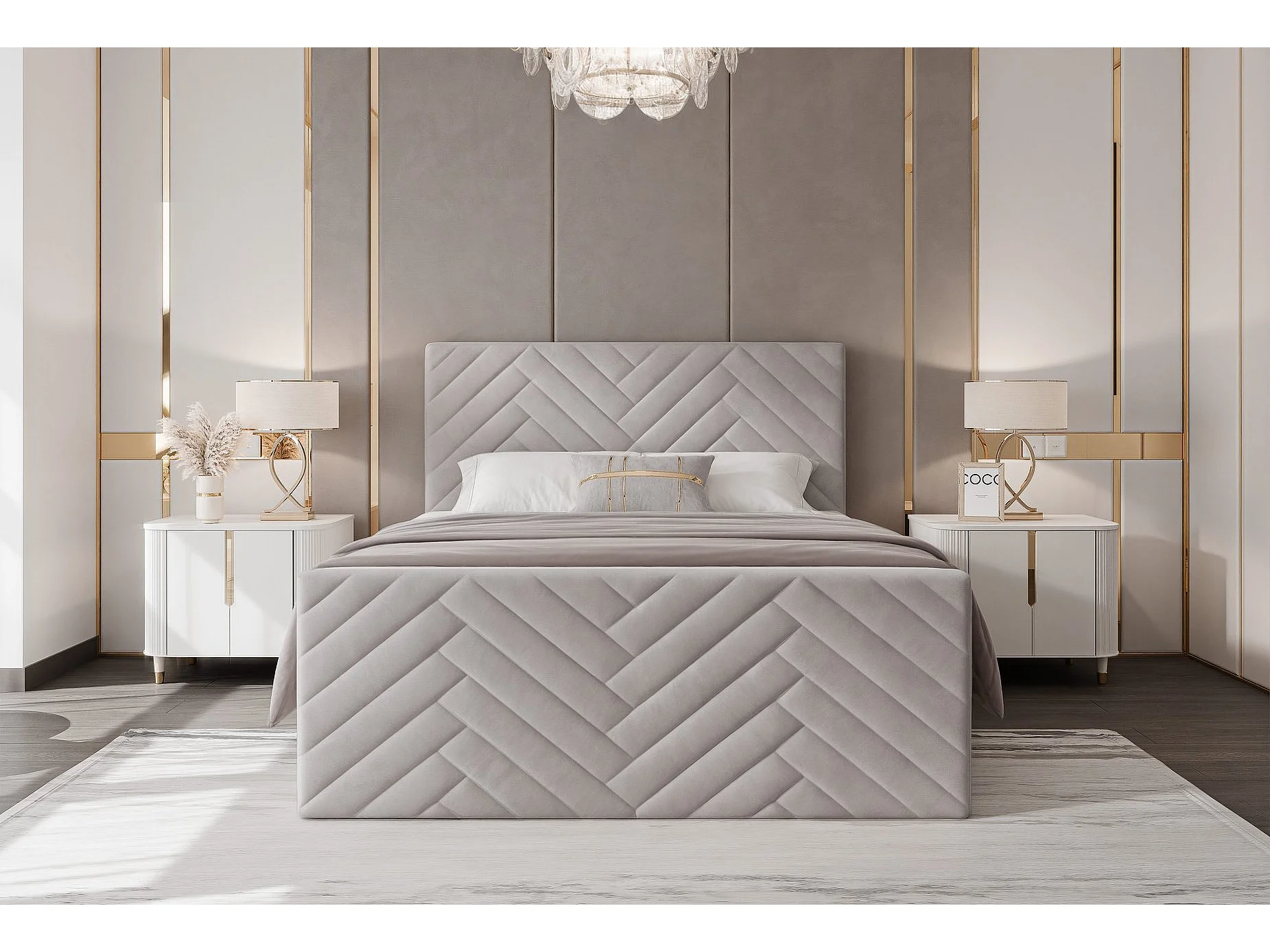 Lit continental rembourré avec surmatelas, gris clair - 200x200 - NEREA PLUS