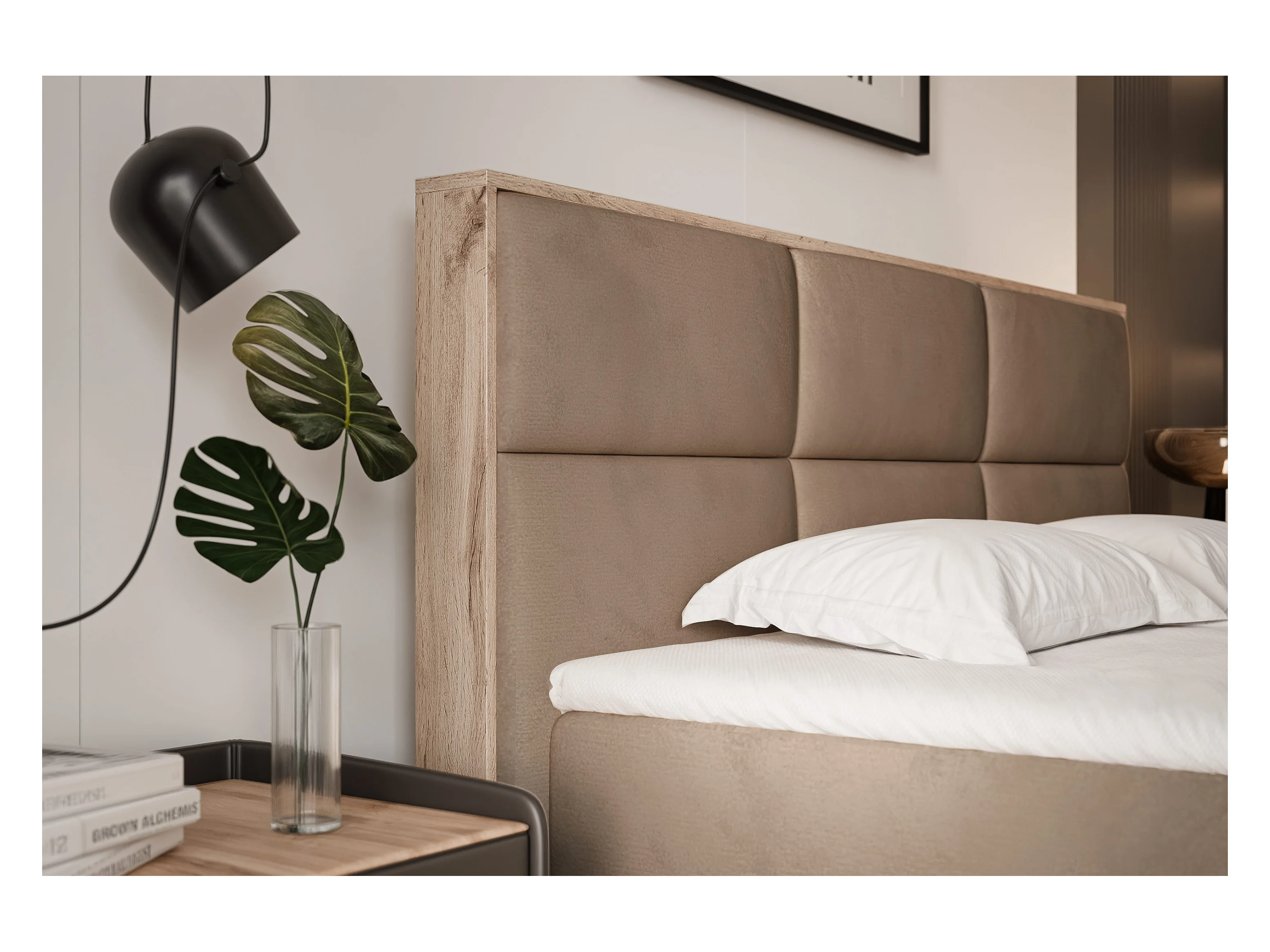 Lit continental rembourré avec surmatelas, marron - 180x200 - LAVIO