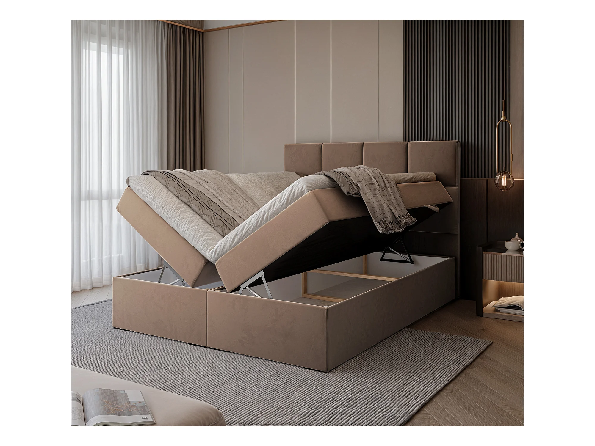 Lit continental rembourré avec surmatelas, marron - 200x200 - MAGNUS