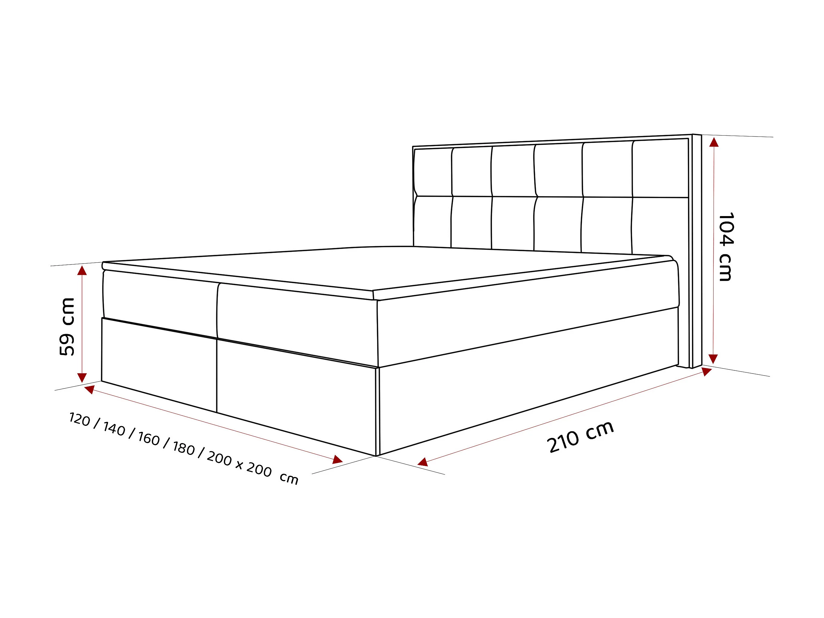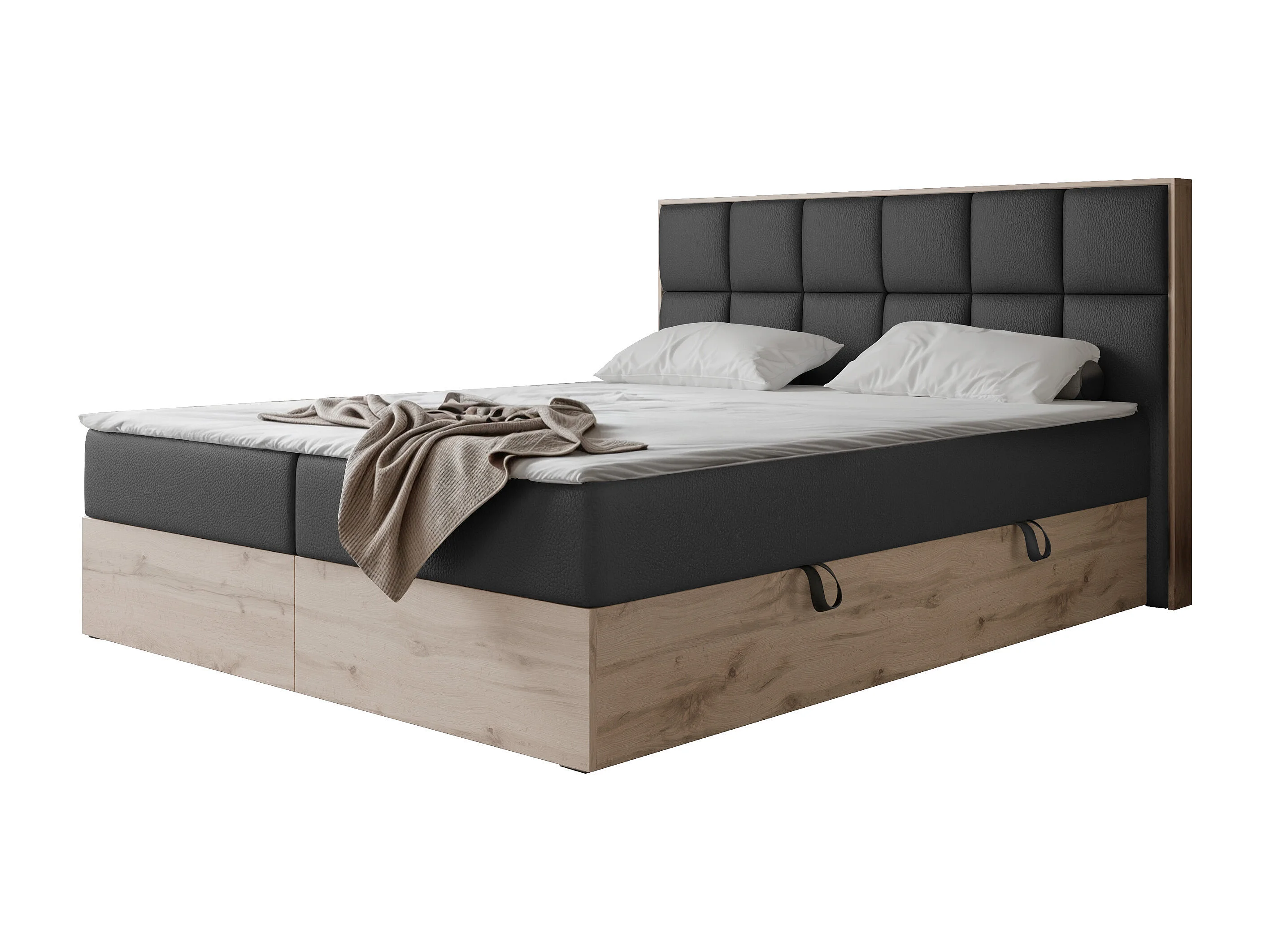 Lit continental rembourré avec surmatelas, noir - 140x200 - LAVIO II