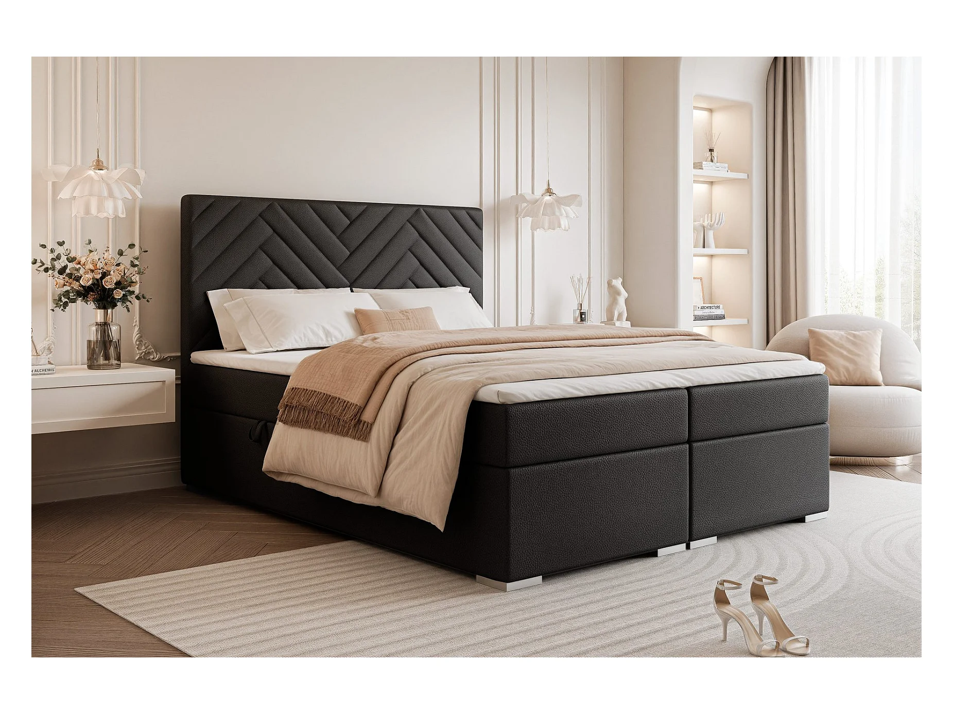 Lit continental rembourré avec surmatelas, noir - 140x200 - NEREA