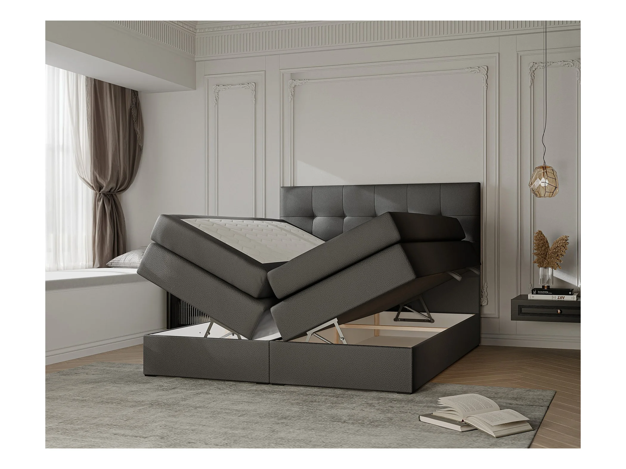 Lit continental rembourré avec surmatelas, noir - 160x200 - AZARIO