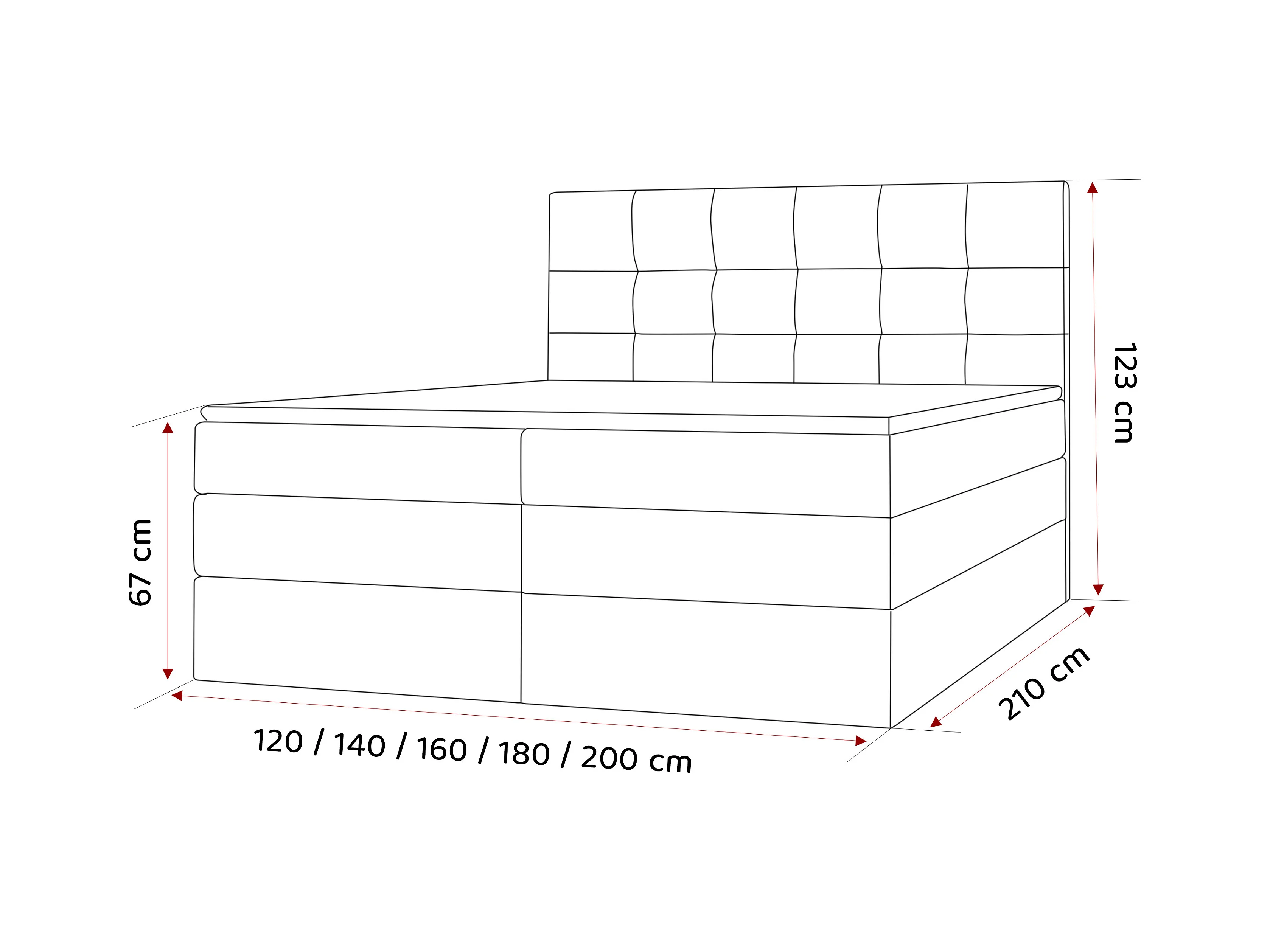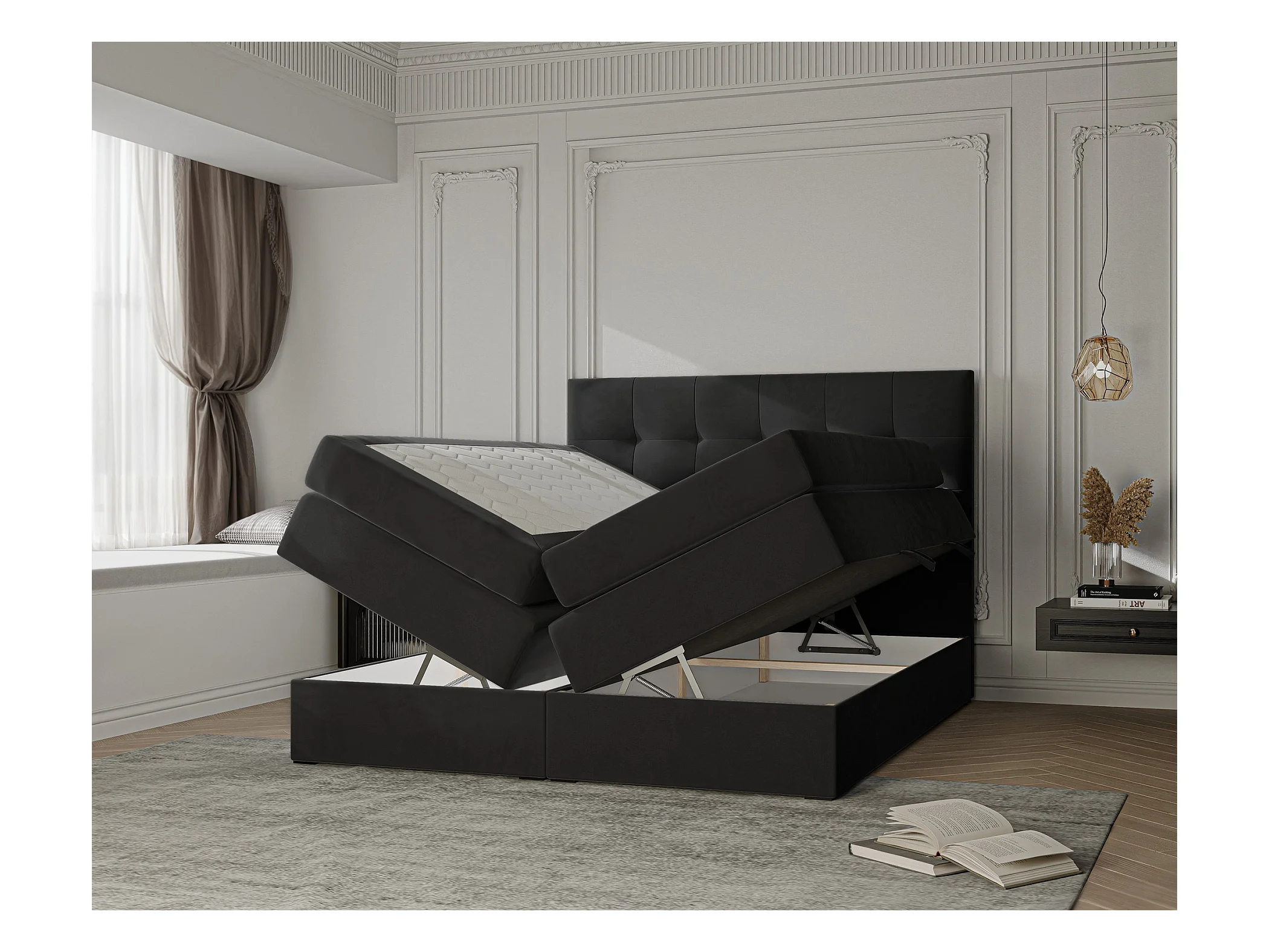 Lit continental rembourré avec surmatelas, noir - 160x200 - AZARIO