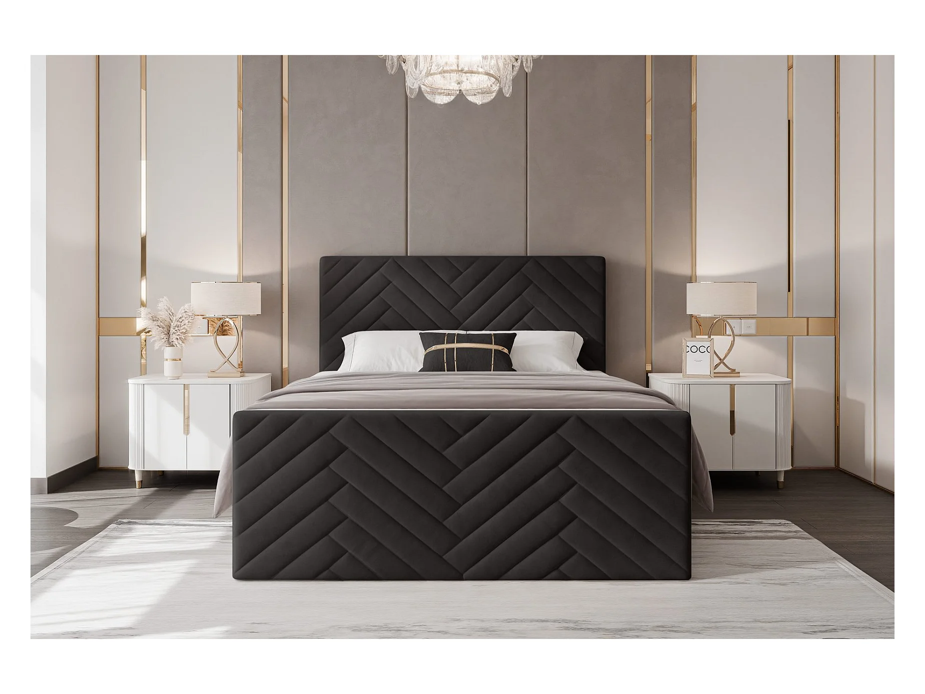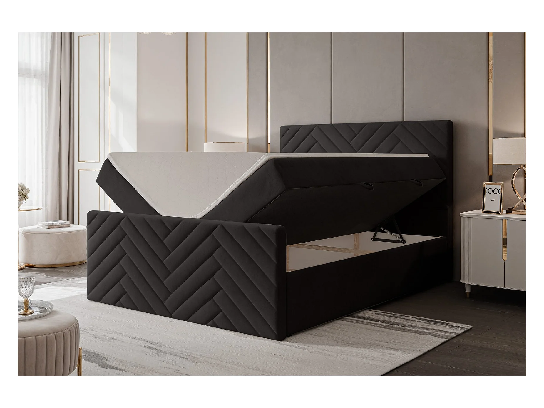Lit continental rembourré avec surmatelas, noir - 160x200 - NEREA PLUS