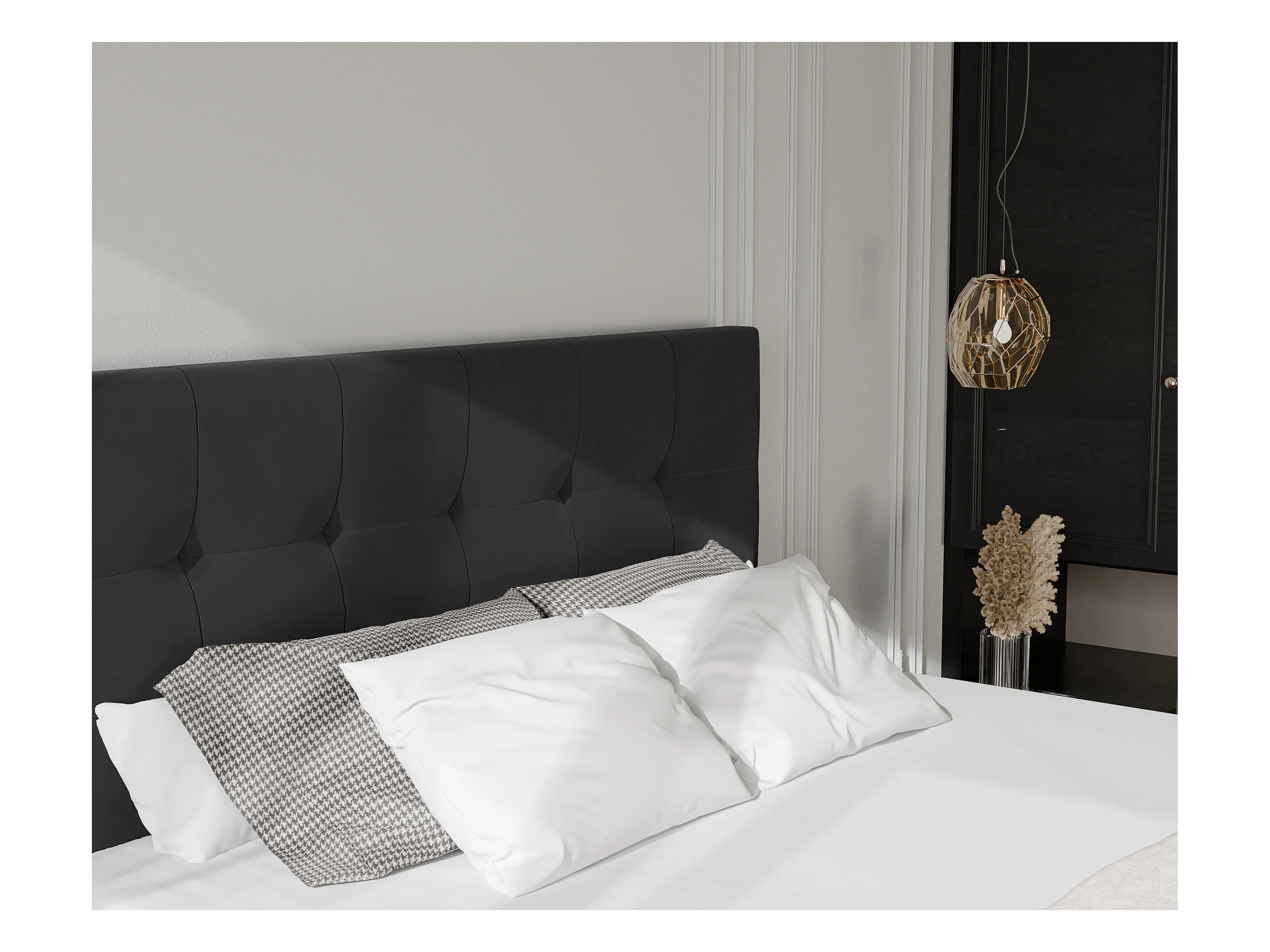 Lit continental rembourré avec surmatelas, noir - 180x200 - AZARIO