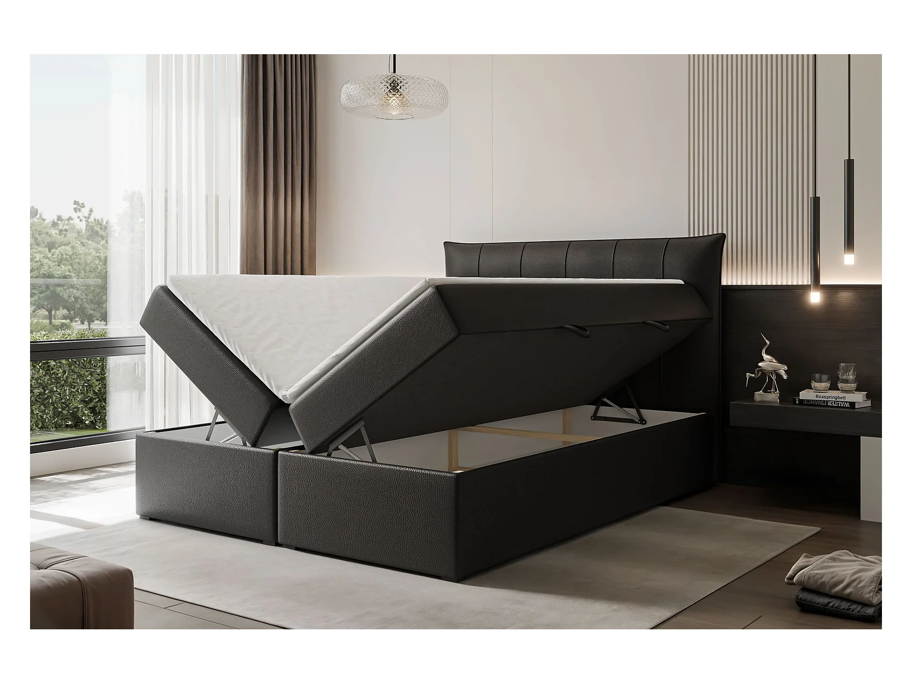 Lit continental rembourré avec surmatelas, noir - 200x200 - CHESTER