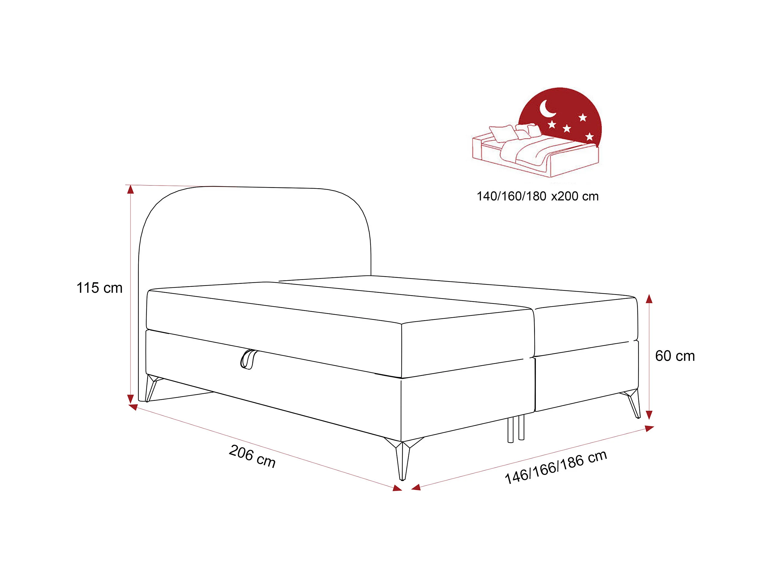 Lit continental rembourré sur pieds avec surmatelas, beige - 140x200 - NOELIA