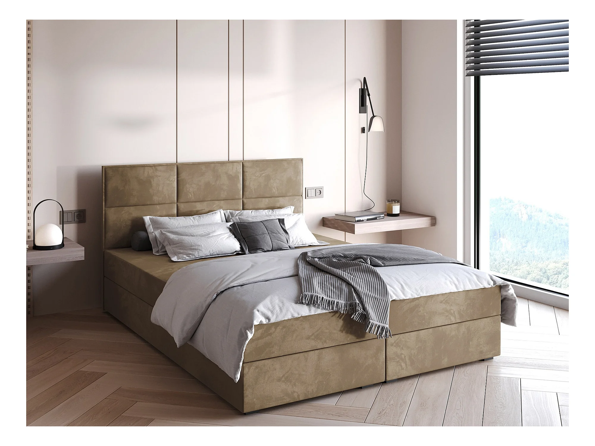 Lit continental Stamford 103, Double, Continental, Brun clair, 160x200, Tapisserie, 160cm