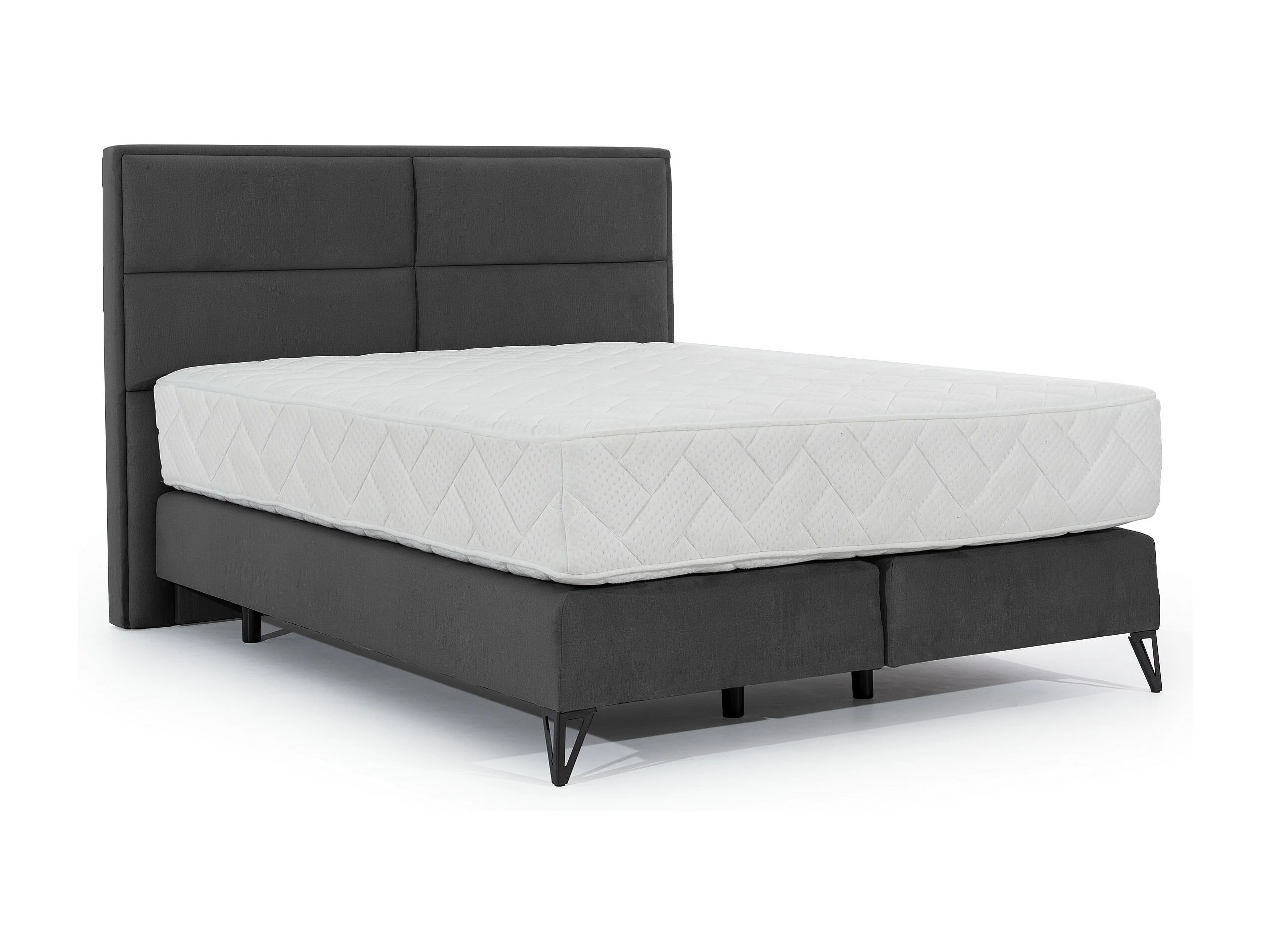 Lit continental tissu anthracite Tiempo avec matelas 30cm en latex et pied métal noir-180x200