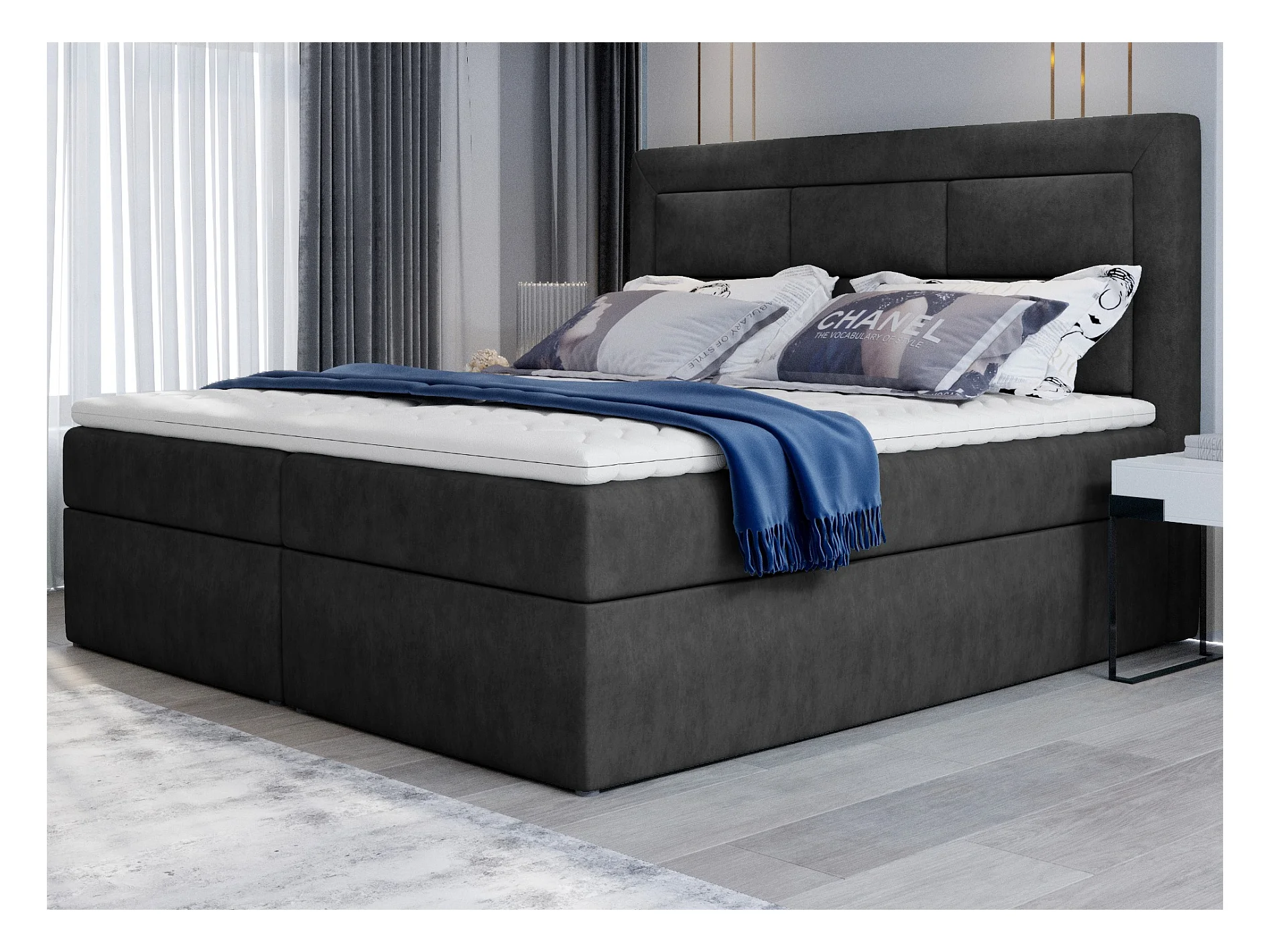 Lit continental tissu gris anthracite Balore-Couchage 160x200 cm
