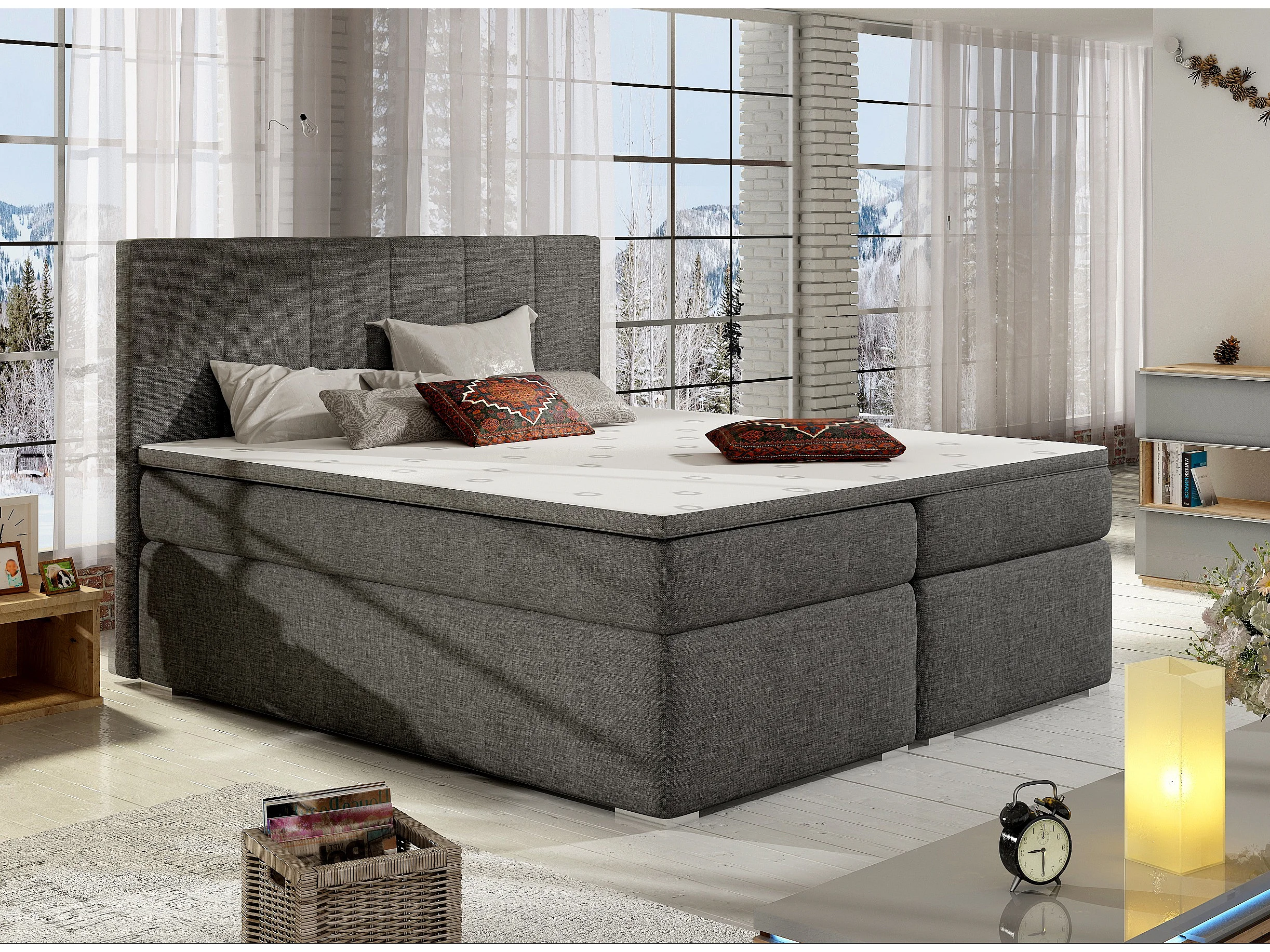 Lit continental tissu gris avec matelas et surmatelas Louna-160x200
