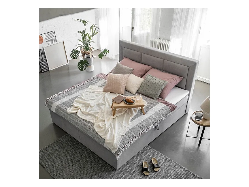 Lit continental tissu noir Balore-Couchage 160x200 cm