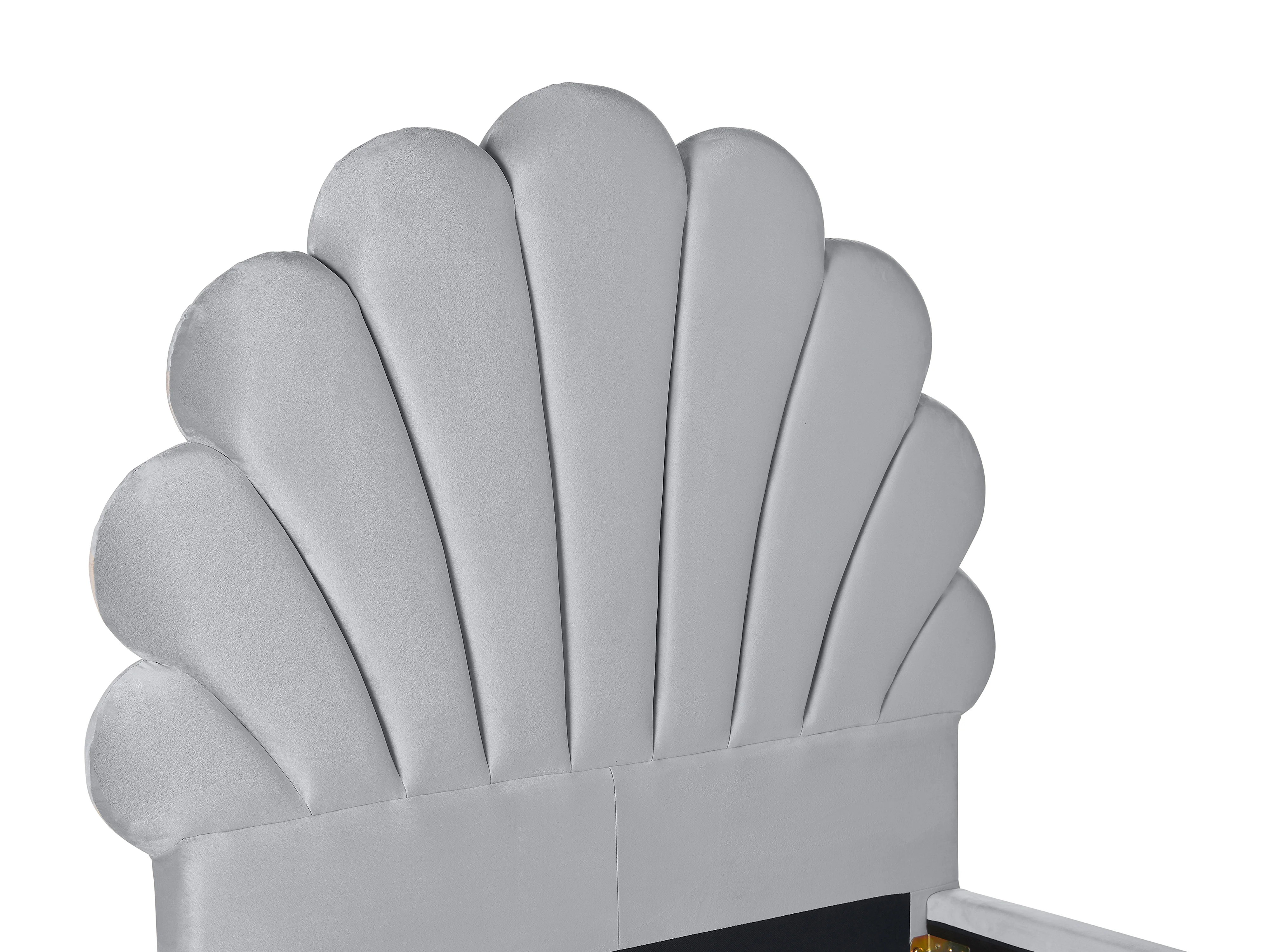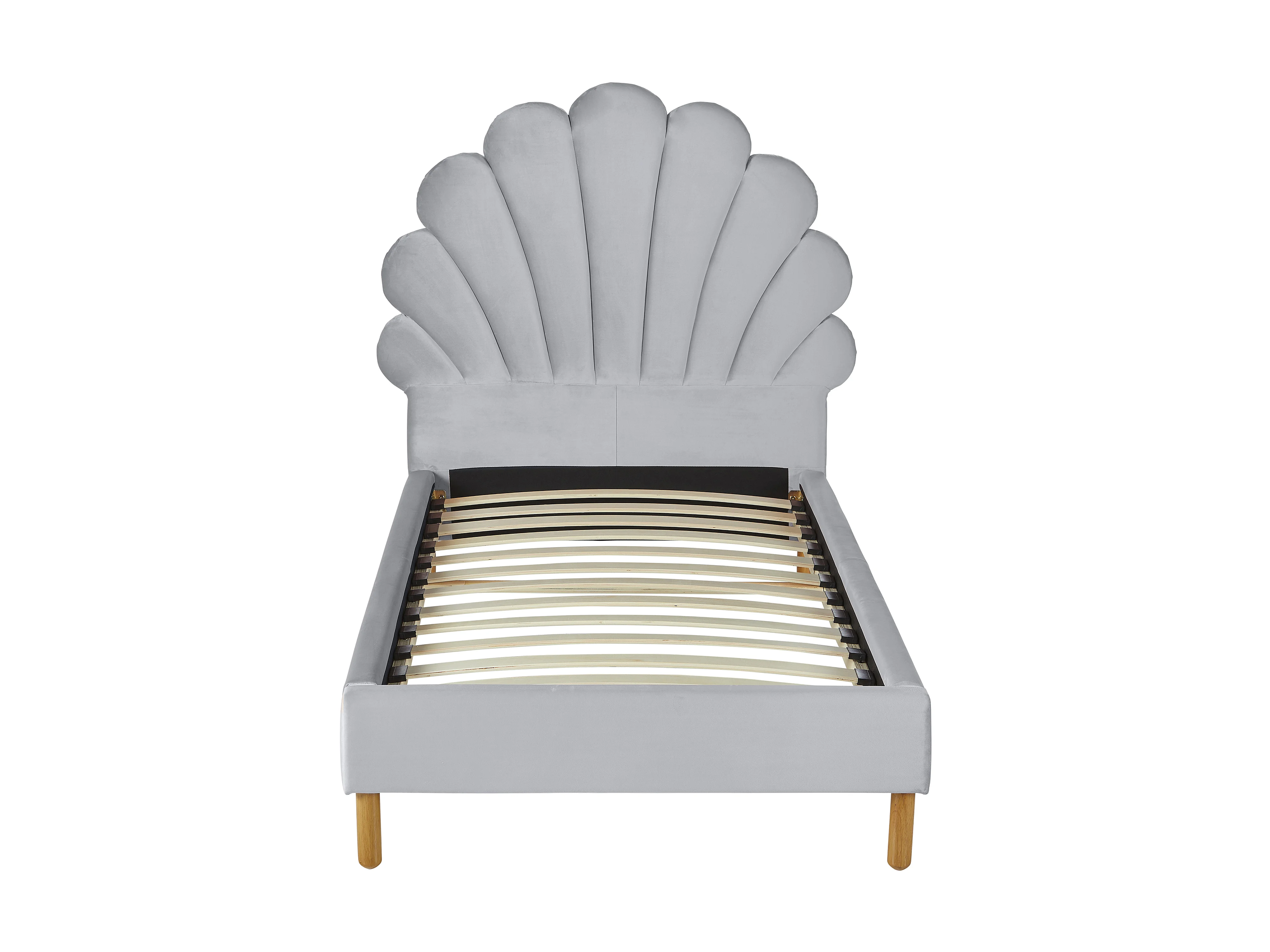Lit coquillage 90 x 190 cm - Velours - Gris clair - MOANA