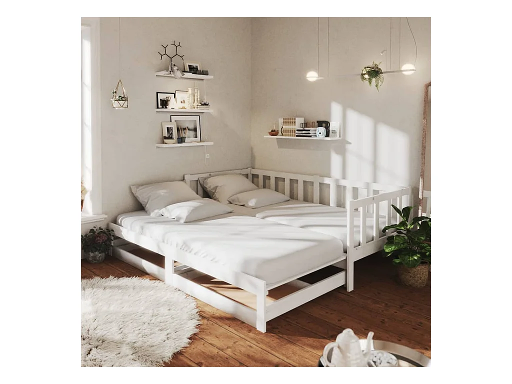 Lit coulissant 2x(90x200) cm Blanc Bois de pin massif 4