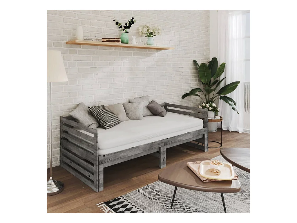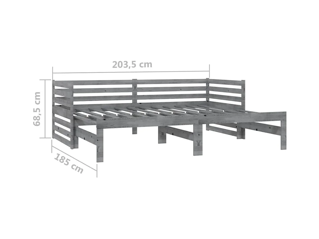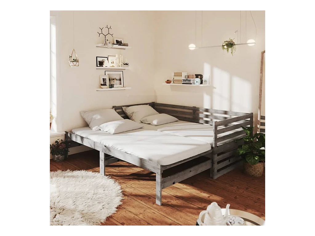 Lit coulissant 2x(90x200) cm Gris Bois de pin massif 8