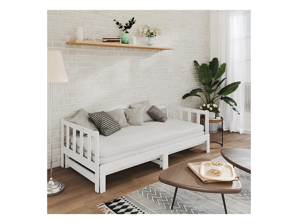 Lit coulissant Blanc 2x(90x200) cm Bois de pin massif
