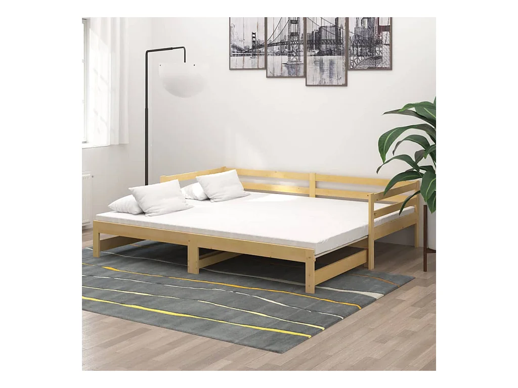 Lit coulissant Bois de pin massif 2x(90x200) cm