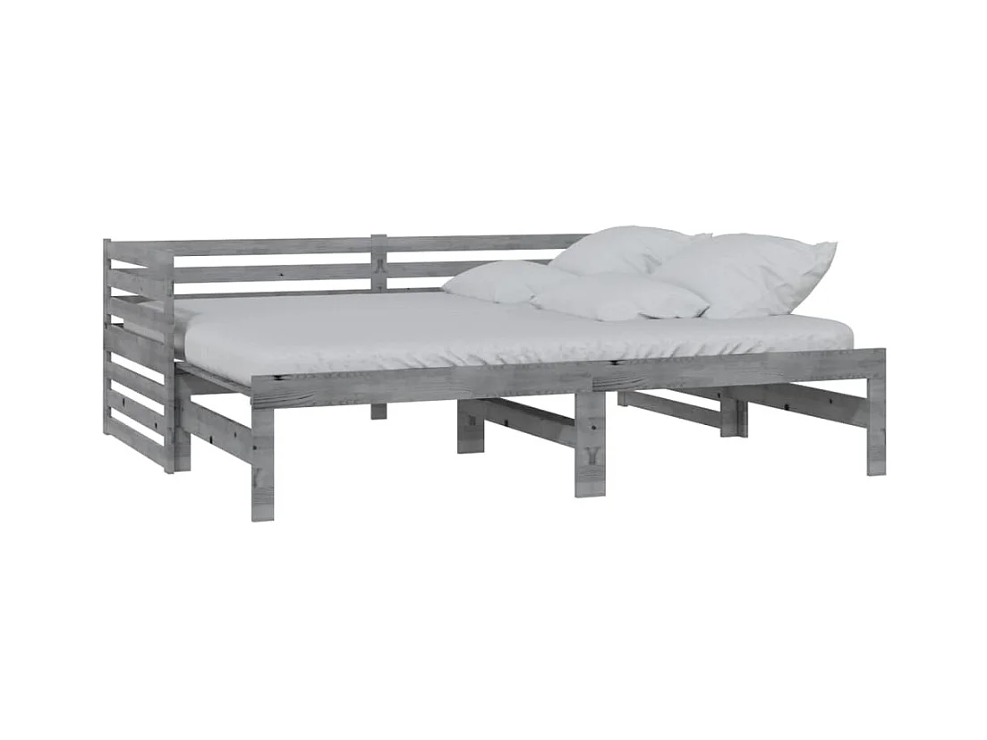Lit coulissant Gris Bois de pin massif 2x(90x200) cm 2