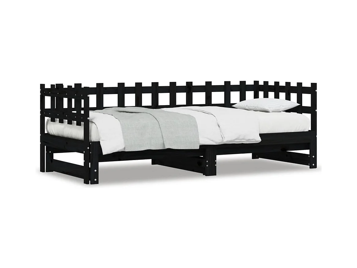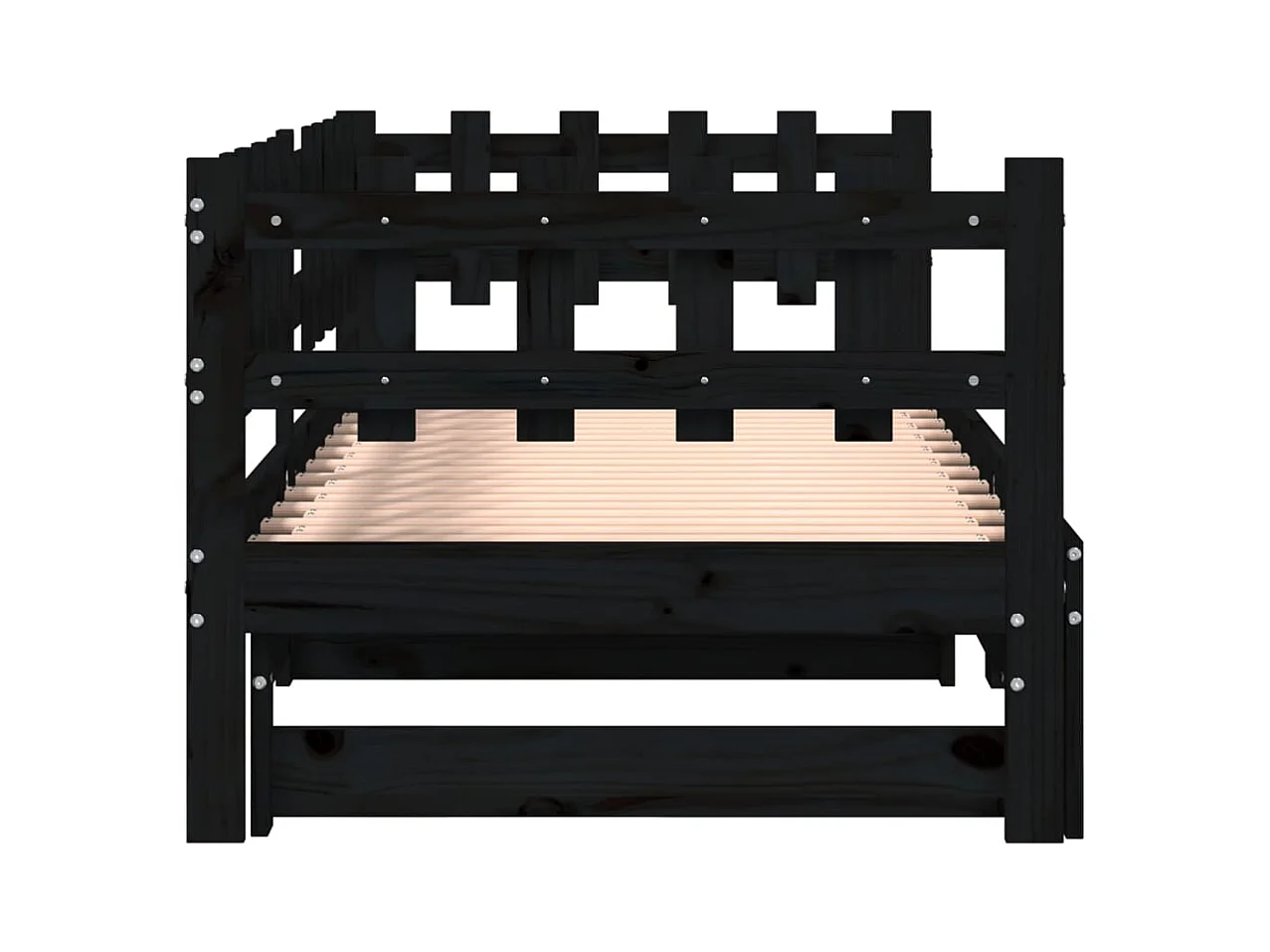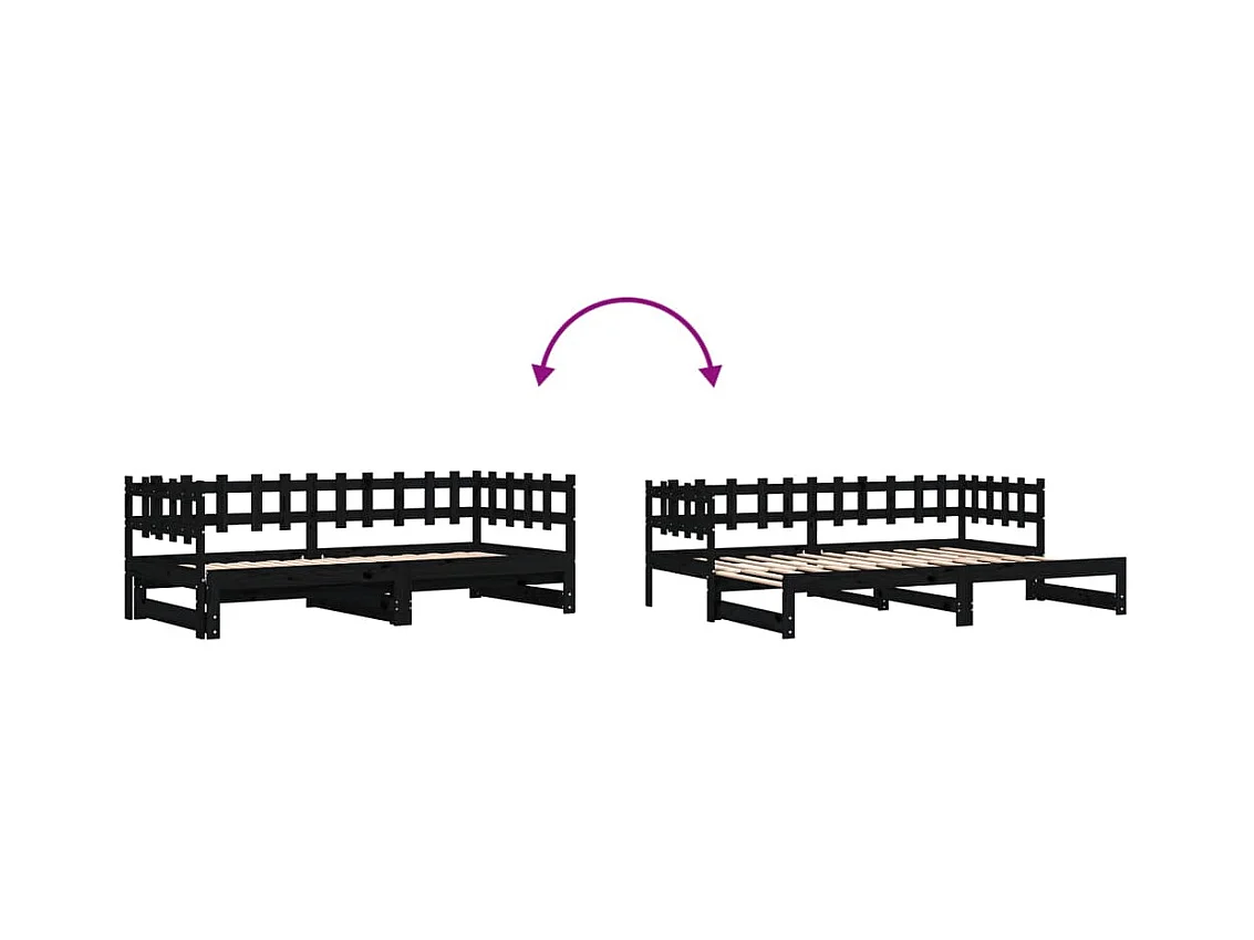 Lit coulissant Noir 2x(80x200) cm Bois de pin massif