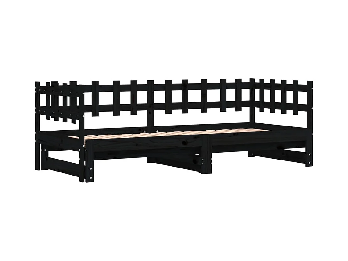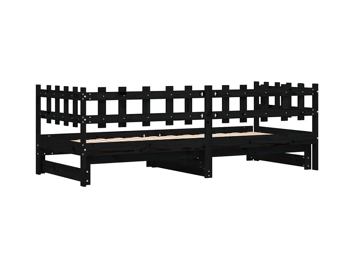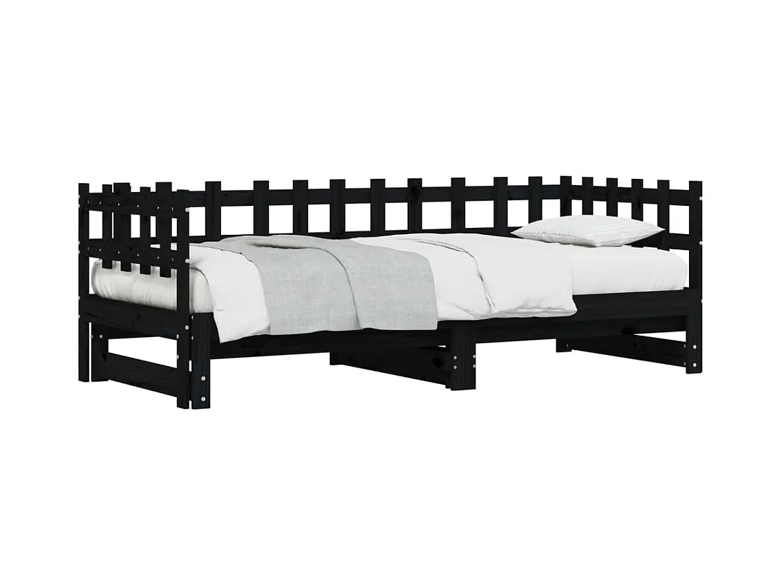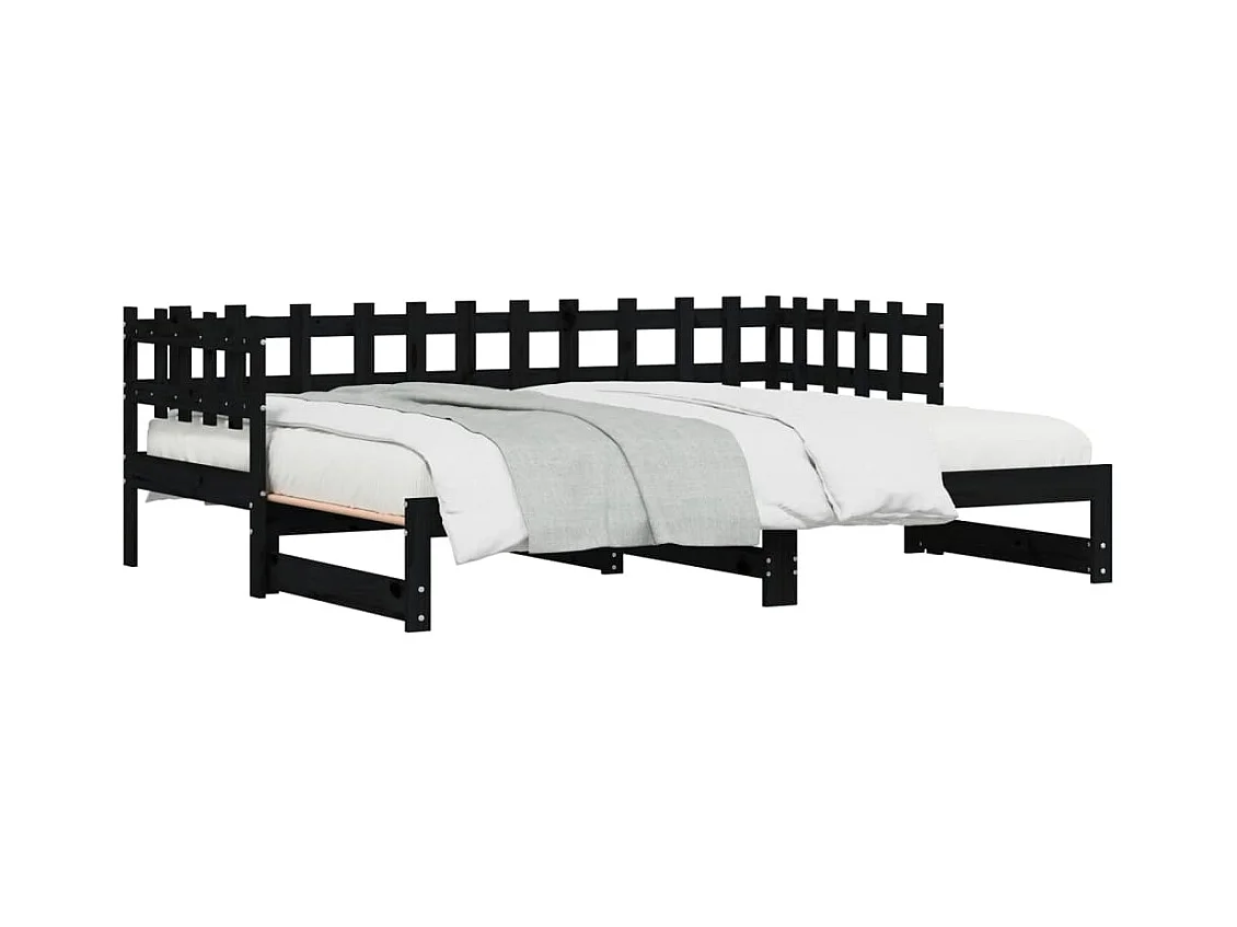 Lit coulissant Noir 2x(80x200) cm Bois de pin massif
