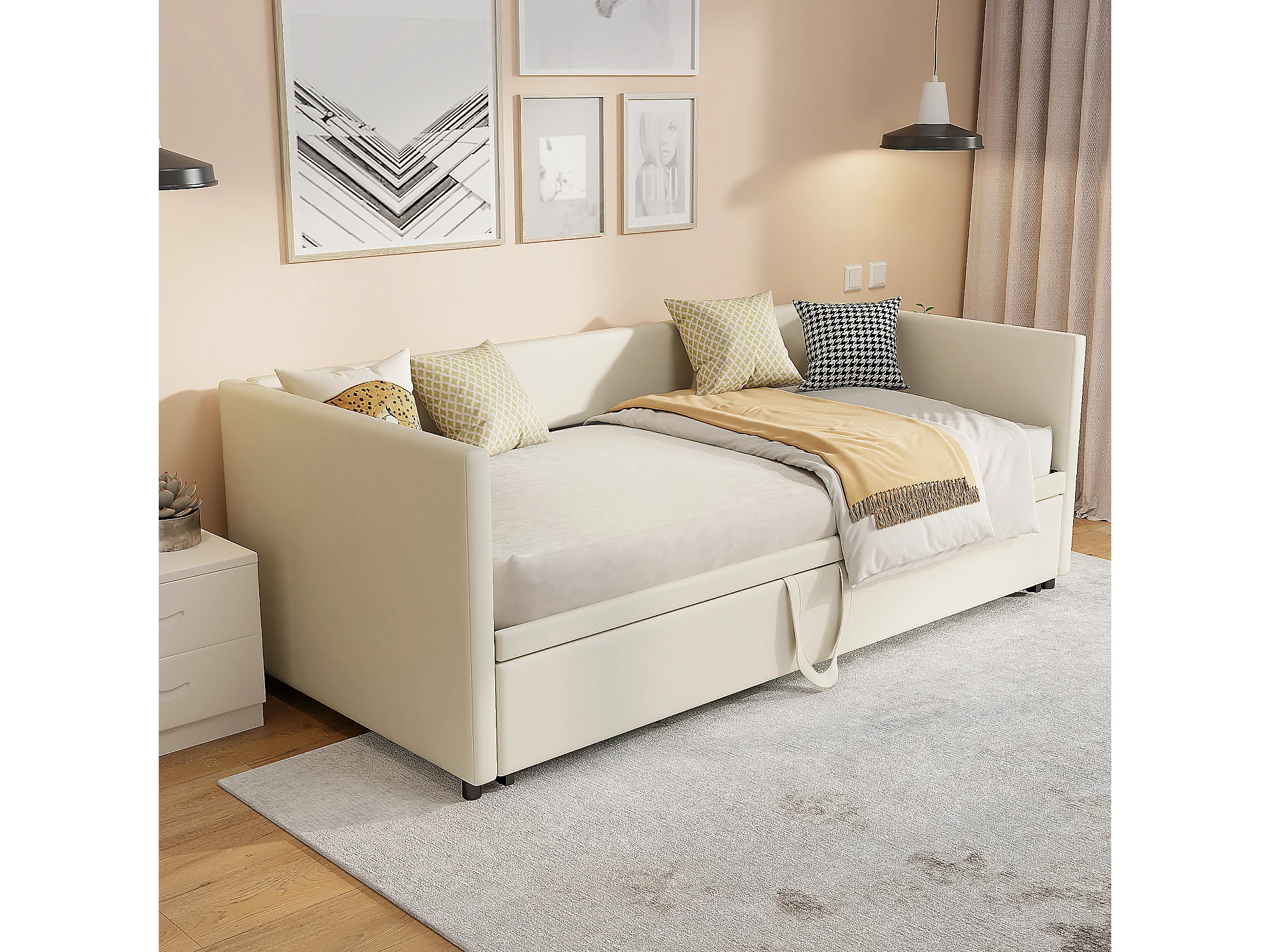 Lit d'invité - 90 / 180 x 200 cm- Tissu velours - Canapé-lit pliant polyfonctionnel extensible - Beige
