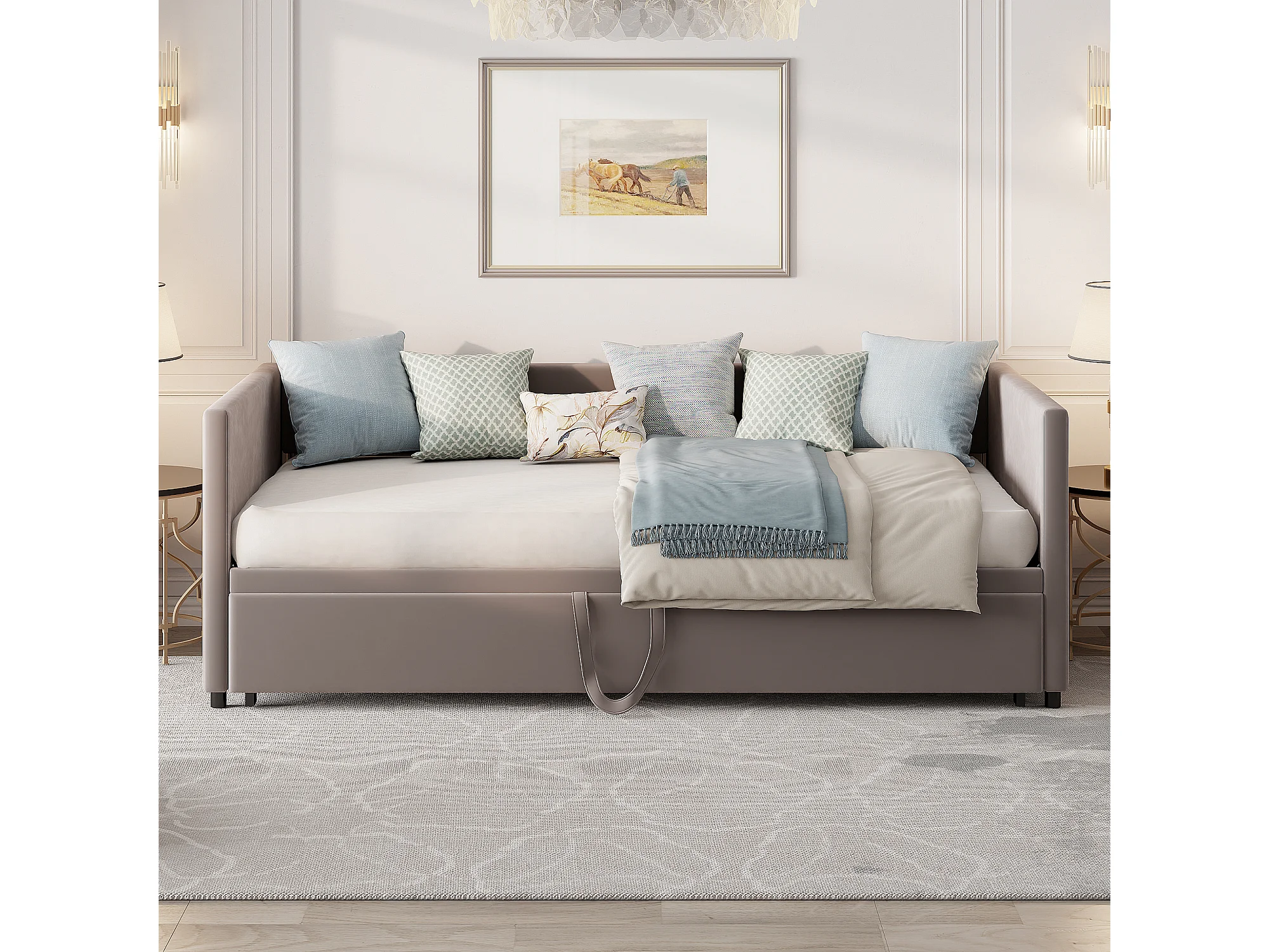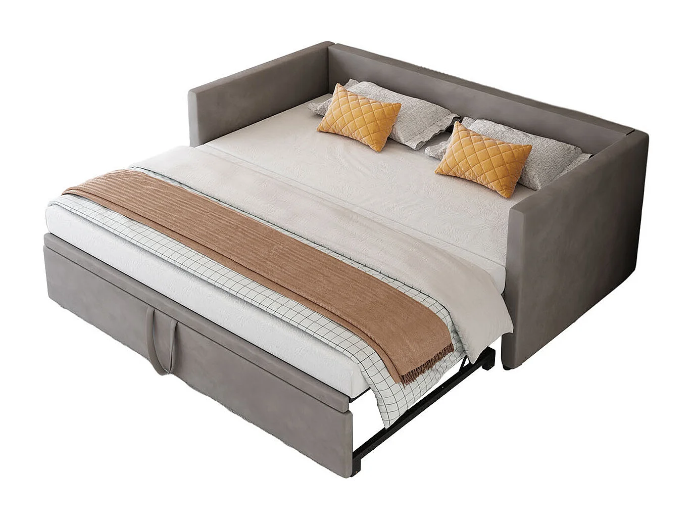 Lit d'invité - 90 / 180 x 200 cm- Tissu velours - Canapé-lit pliant polyfonctionnel extensible - Gris