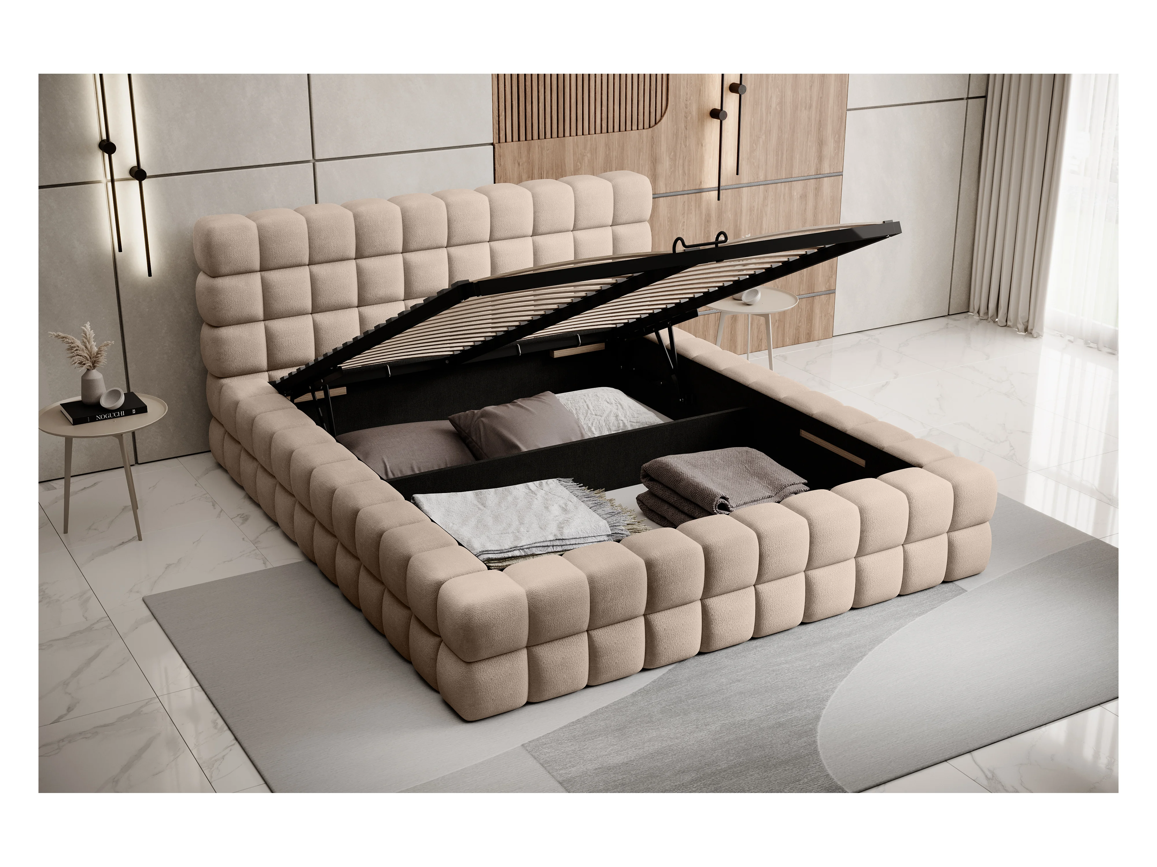 Lit coffre design avec capitonnage velours Kaizer-Couleur Beige-160x200