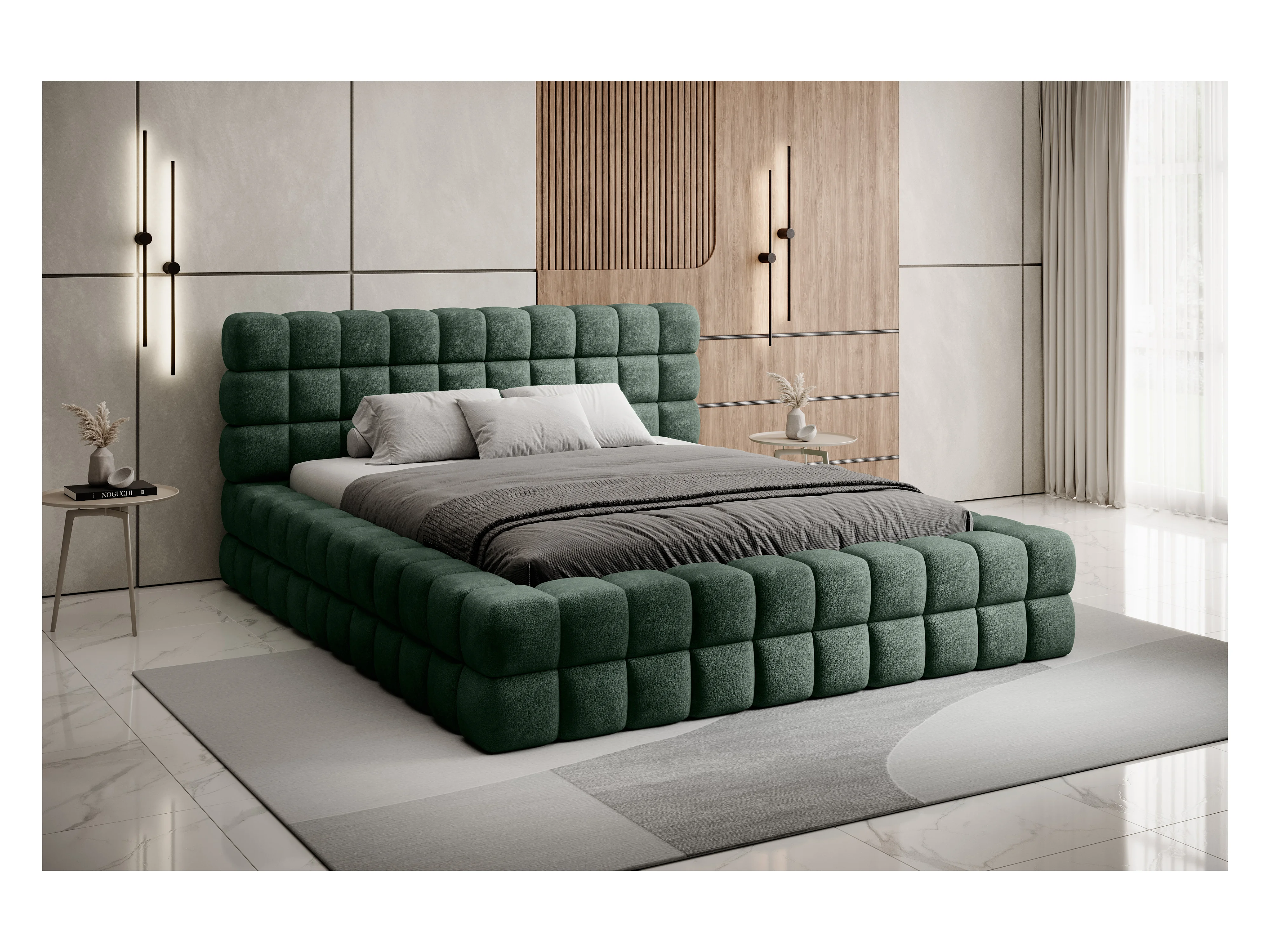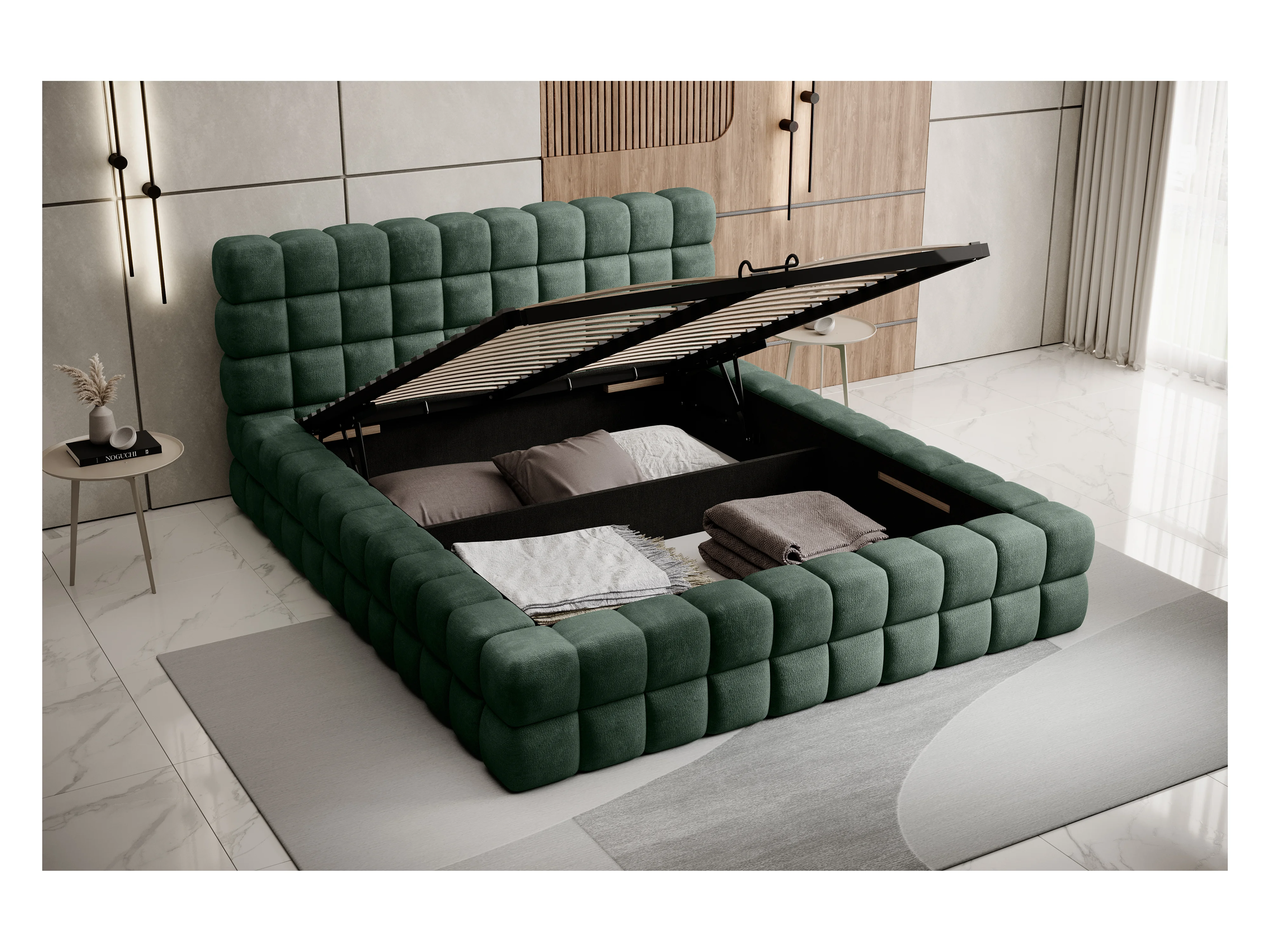 Lit coffre design avec capitonnage velours Kaizer-Couleur Vert épinard-160x200