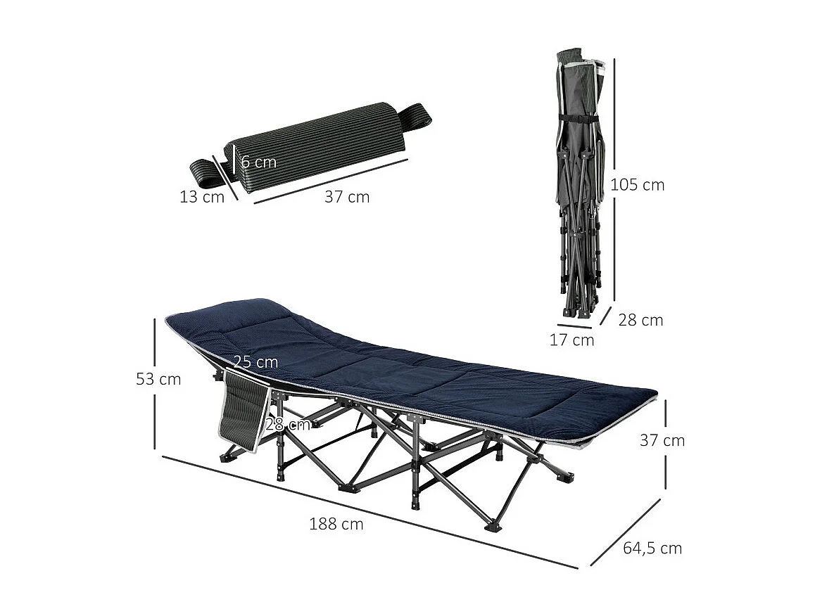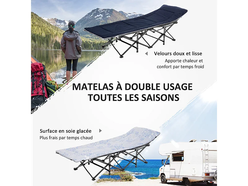 lit de CamBoisg Pliable, Charge jusqu'à 400 kg, lit de Voyage à Pliage Rapide avec Sac de Transport Bleu