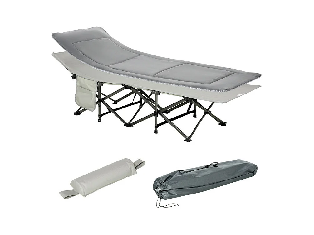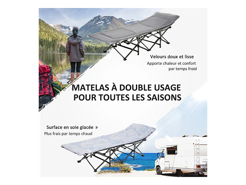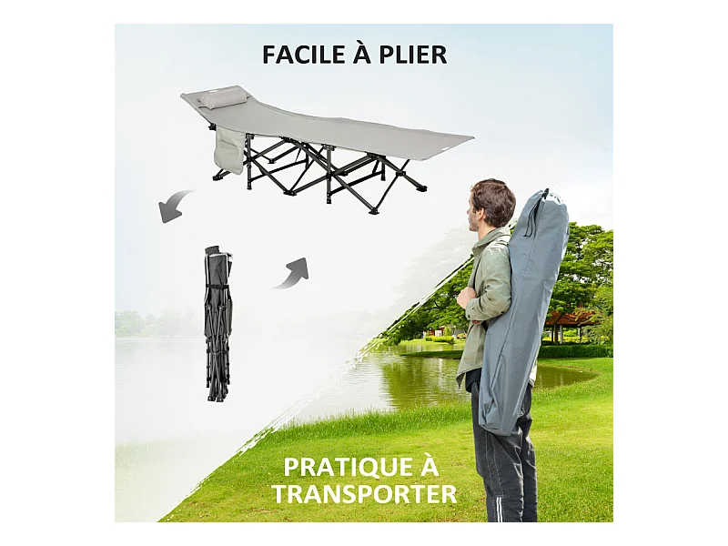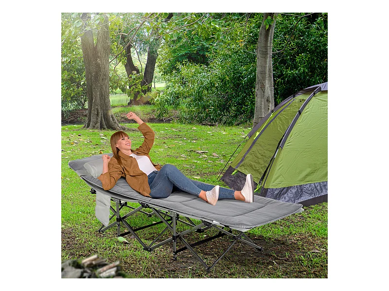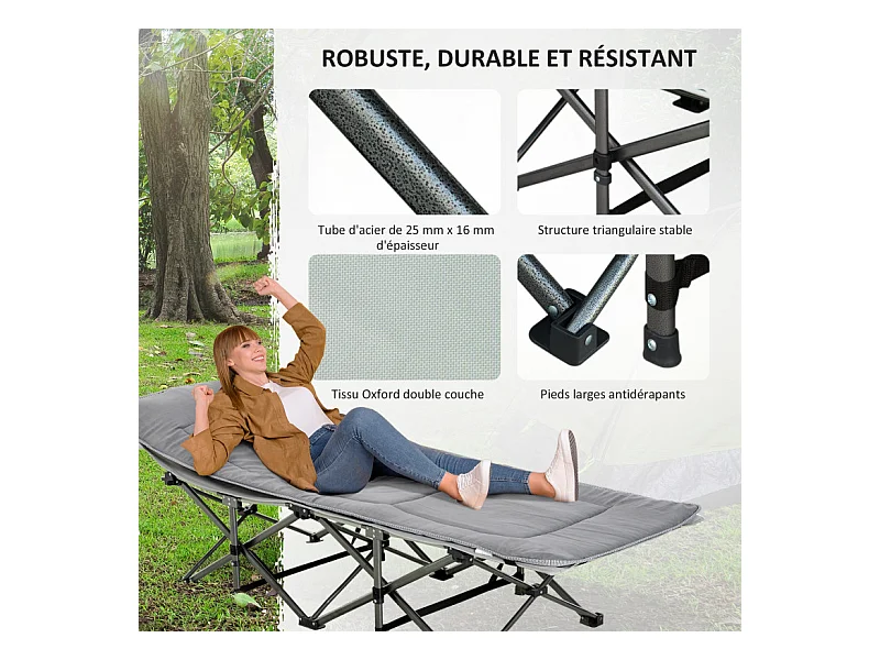 Lit de jardin avec auvent polyester gris et métal noir Motio