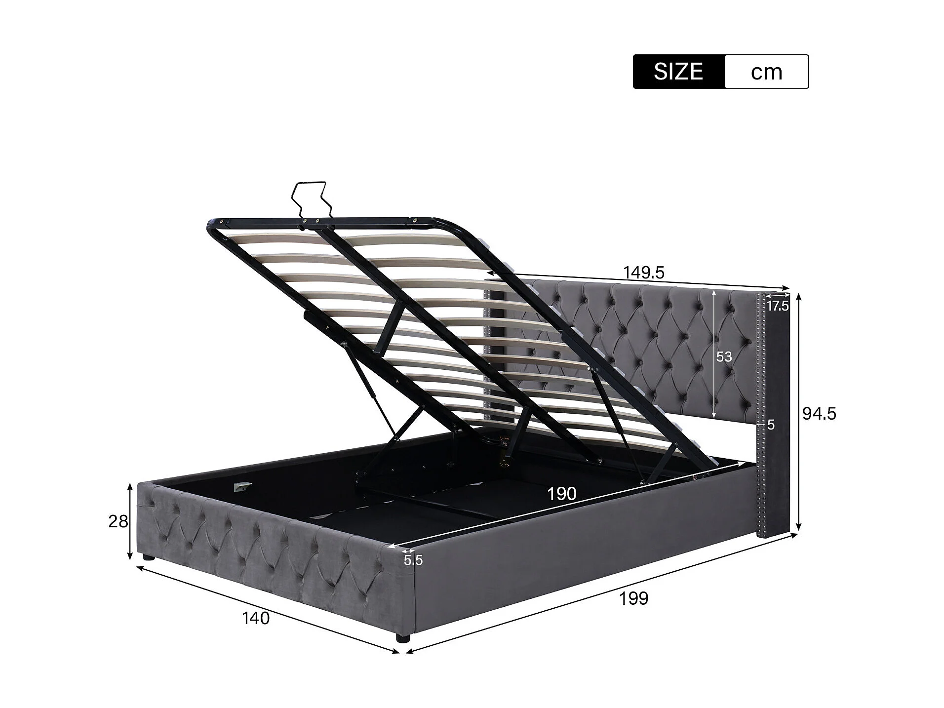 Lit de forme d'oreiller capitonné, double rangée de rivets en flanelle, boutonnière cousue, lit double 140*190 avec fonction hydraulique