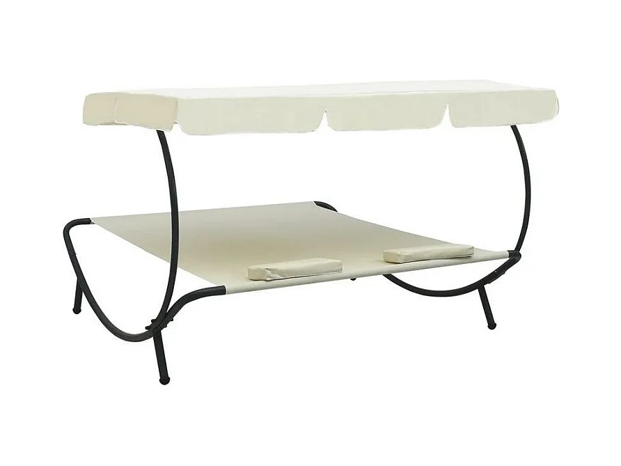 Lit de jardin 2 places polyester blanc et métal noir Motio