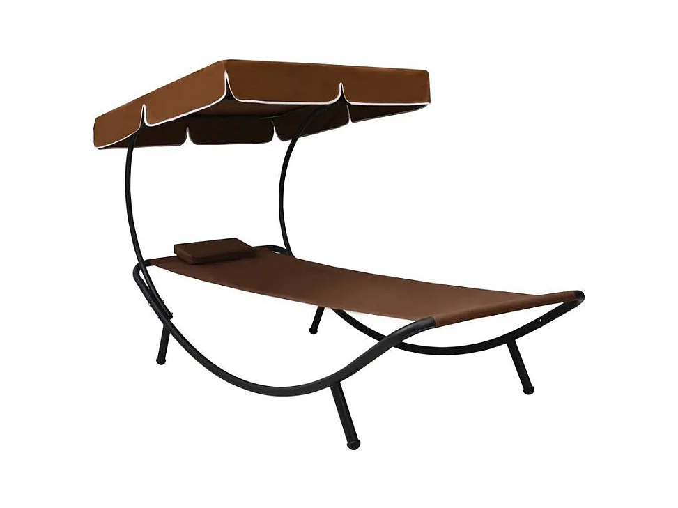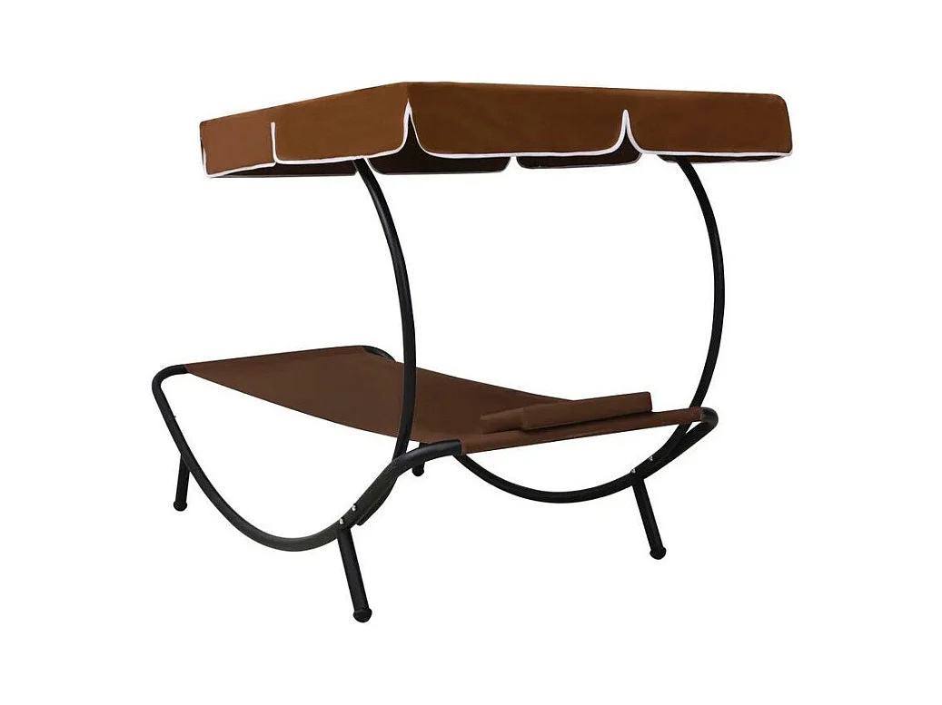 Lit de jardin avec auvent polyester marron et métal noir Motio