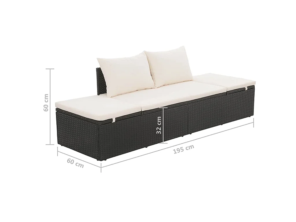 Lit de jardin Noir 195x60 cm Résine tressée