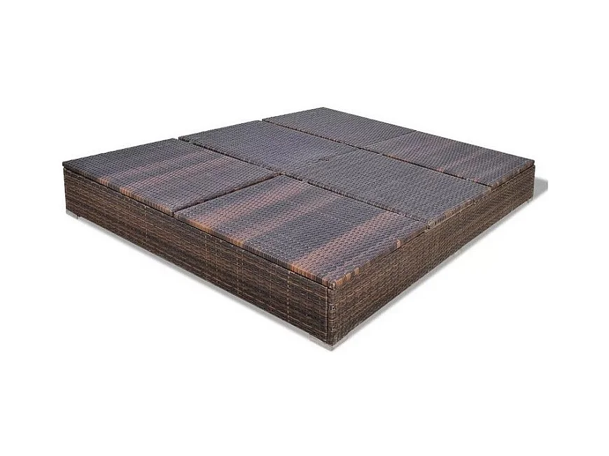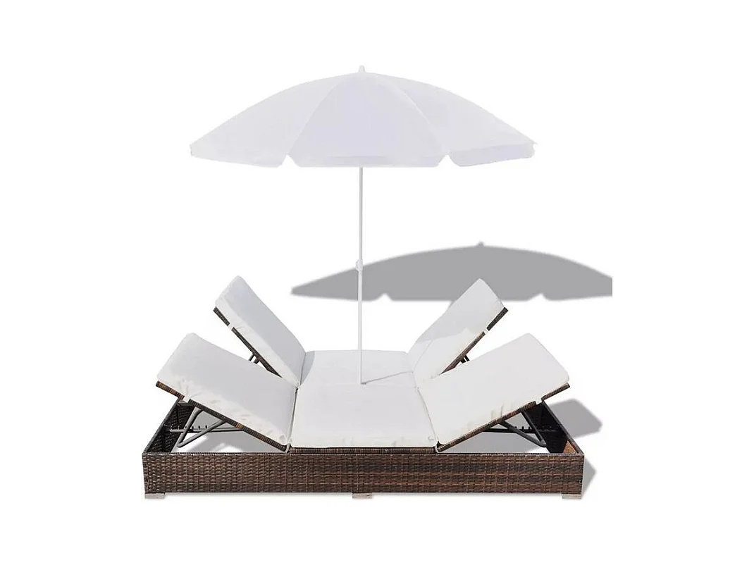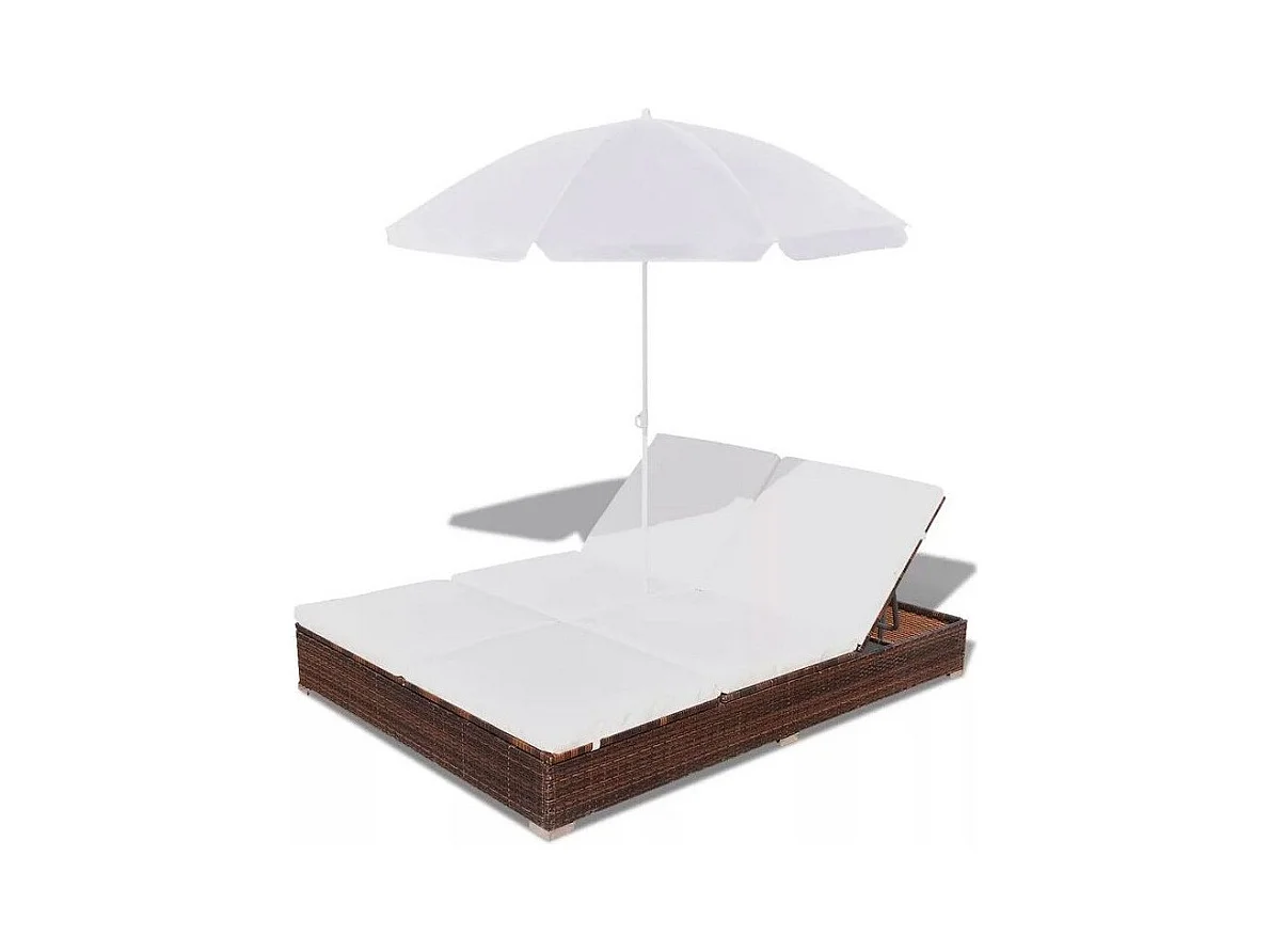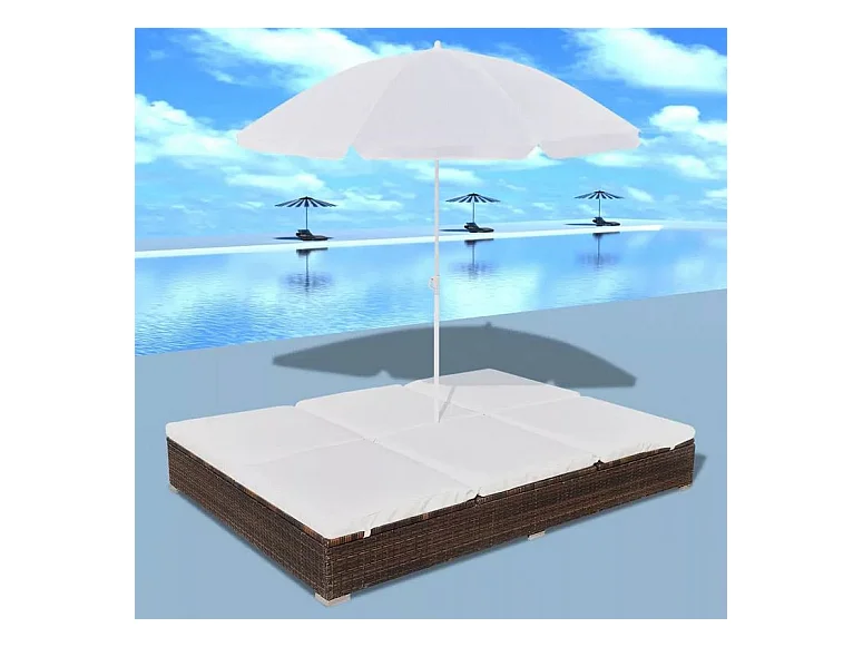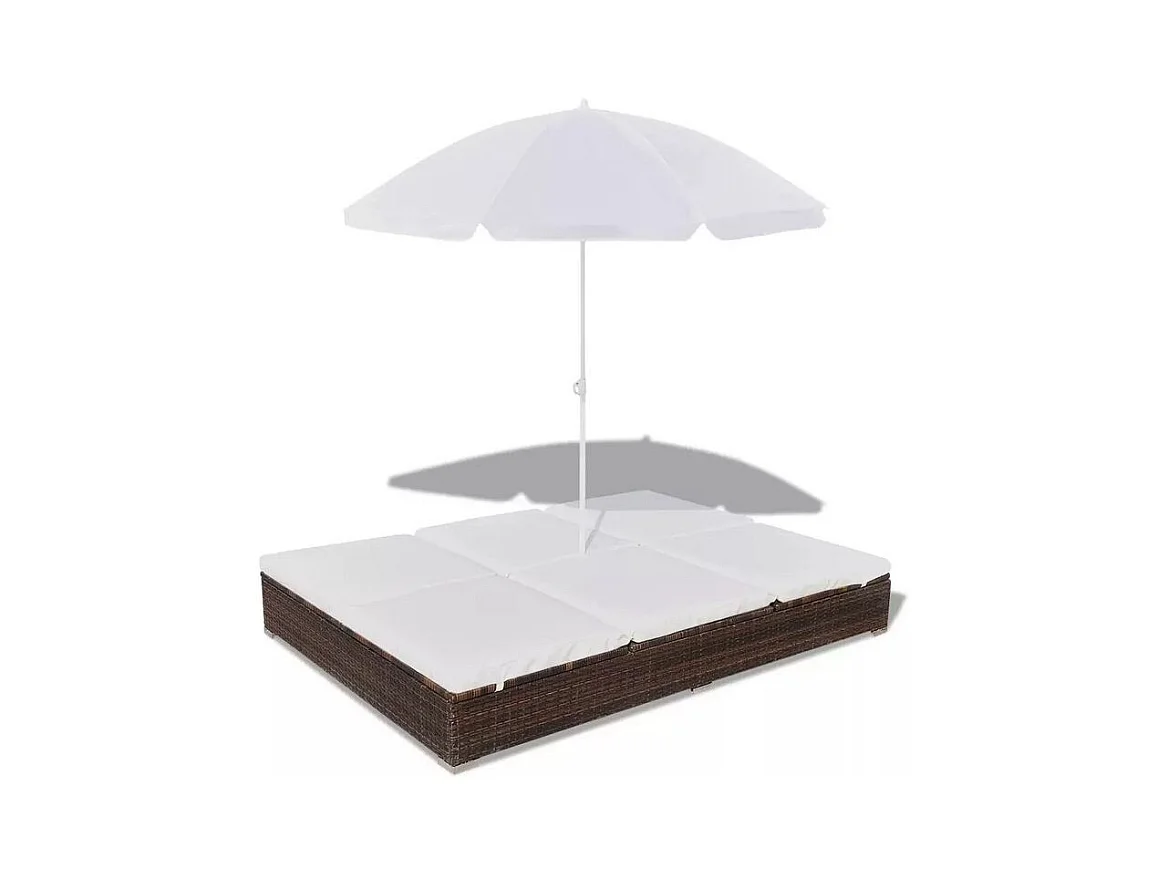 Lit de jardin réglable avec parasol résine tressée marron Uvo