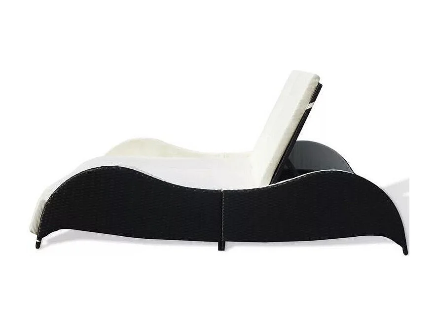 Lit de jardin tissu blanc et résine tressée noire Methy