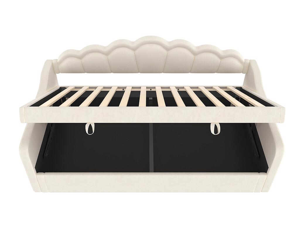 Lit de jour 90x200cm, canapé-lit, lit hydraulique, avec espace de rangement, bande led à couleur changeante, lit simple (sans matelas), velours, beige