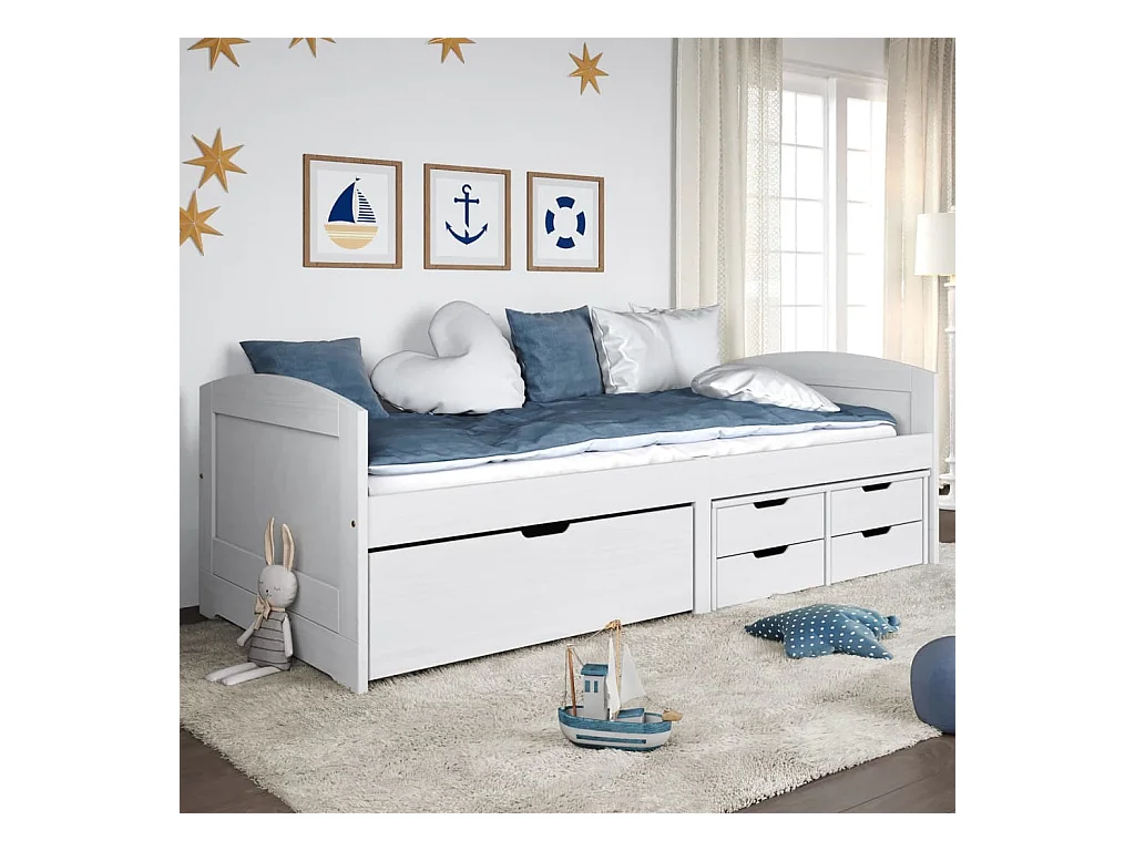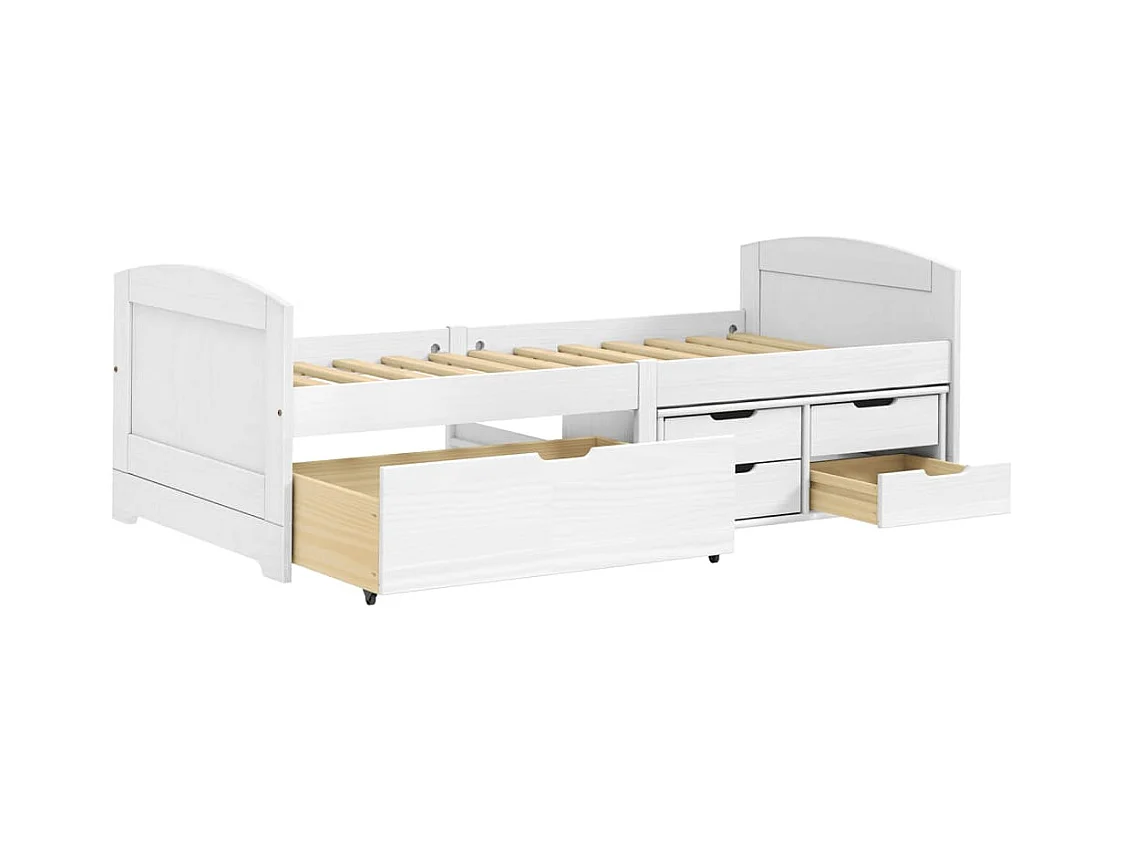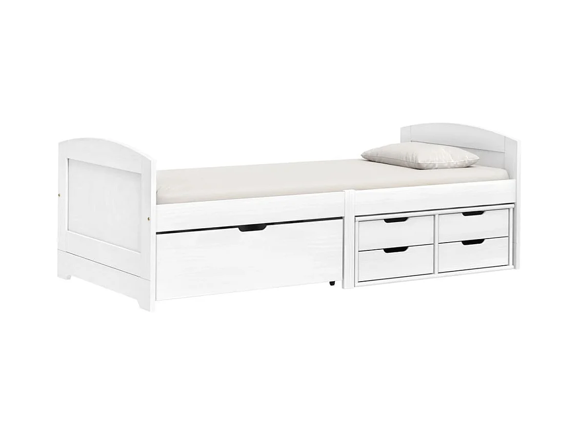 Lit de jour avec 5 tiroirs IRUN blanc 90x200 cm bois pin massif