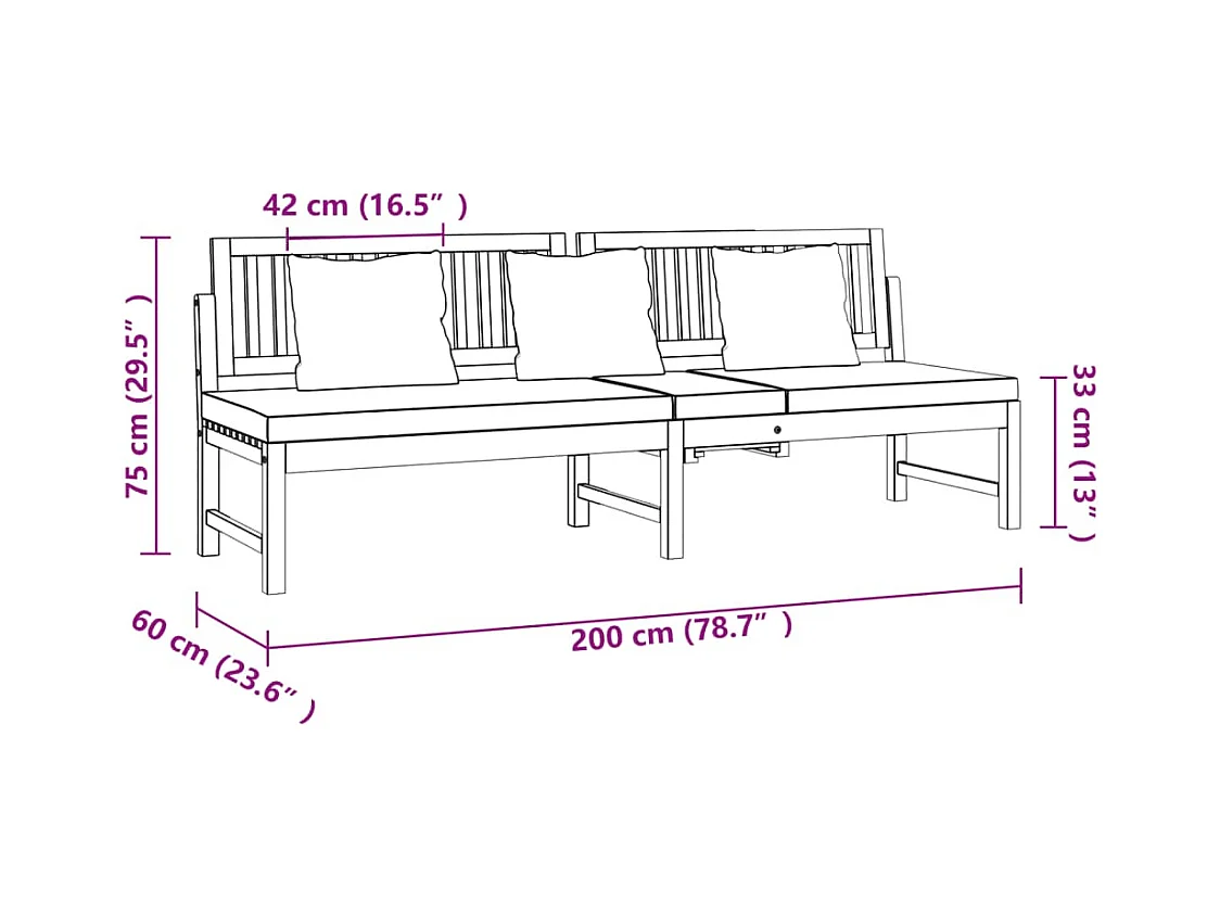 Lit de jour avec coussin crème 200x60x75cm Bois d'acacia solide