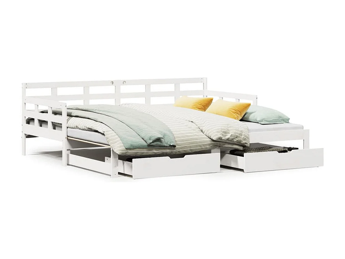 Lit de jour avec gigogne et tiroirs sans matelas blanc 80x200cm
