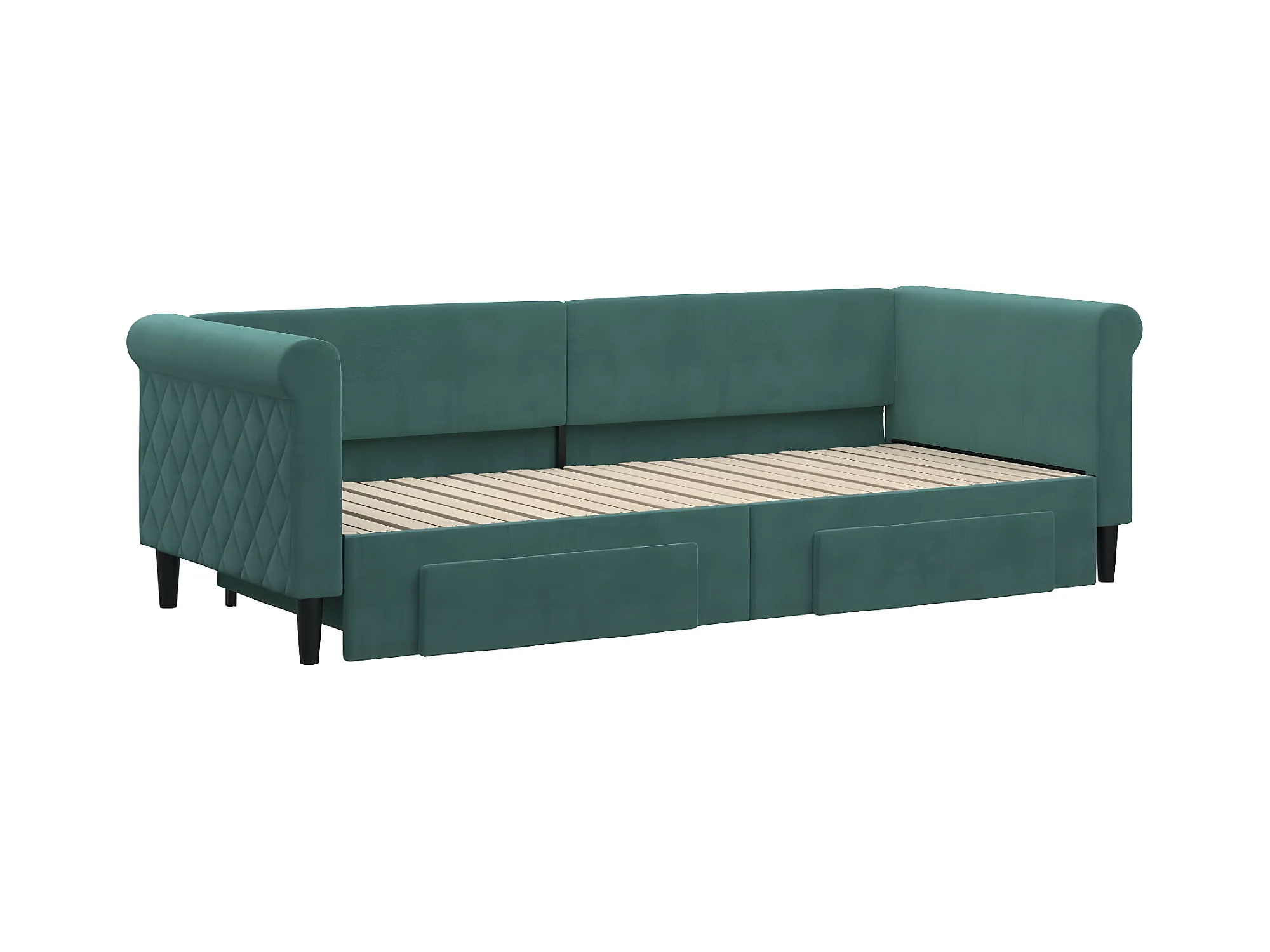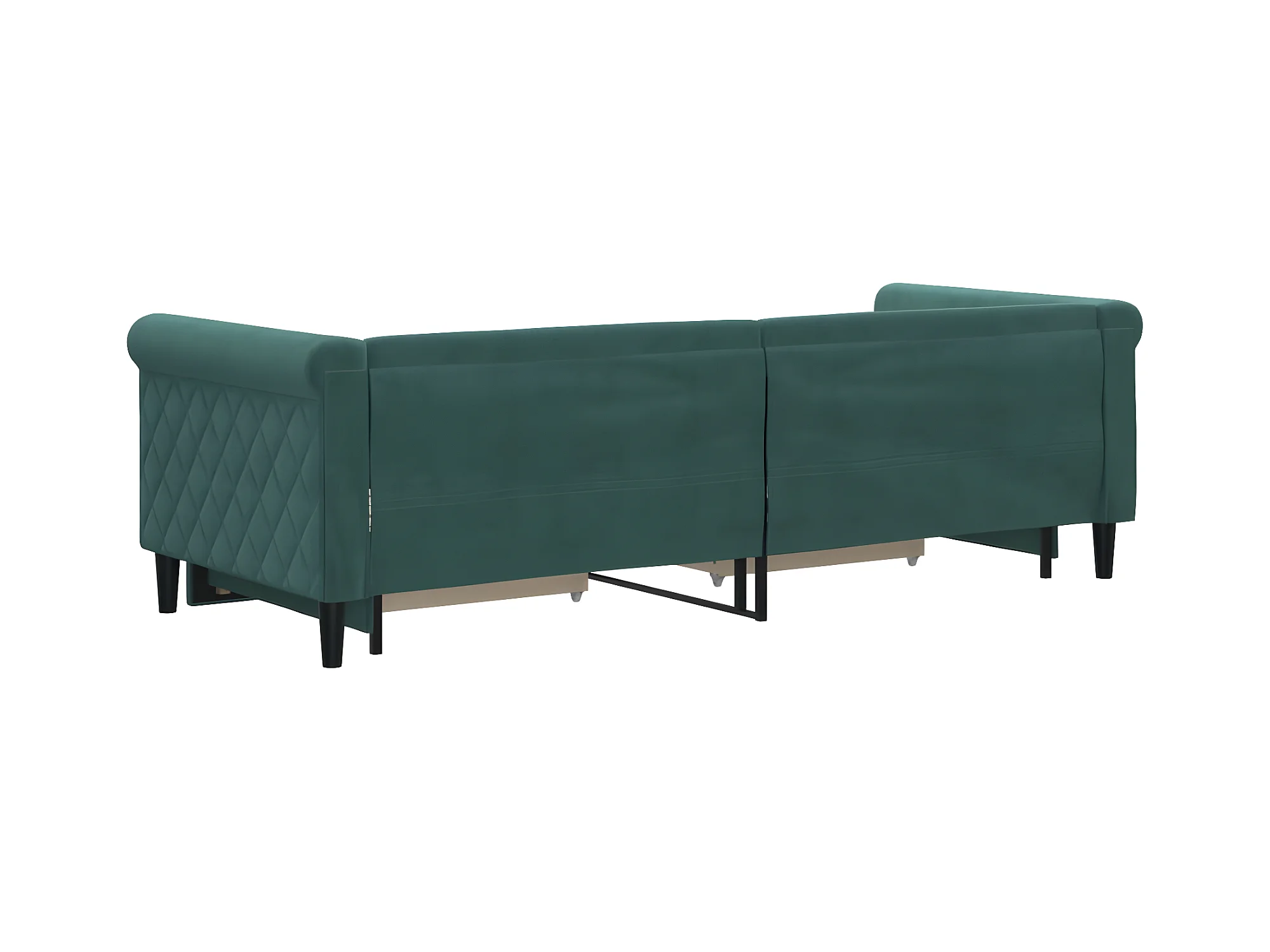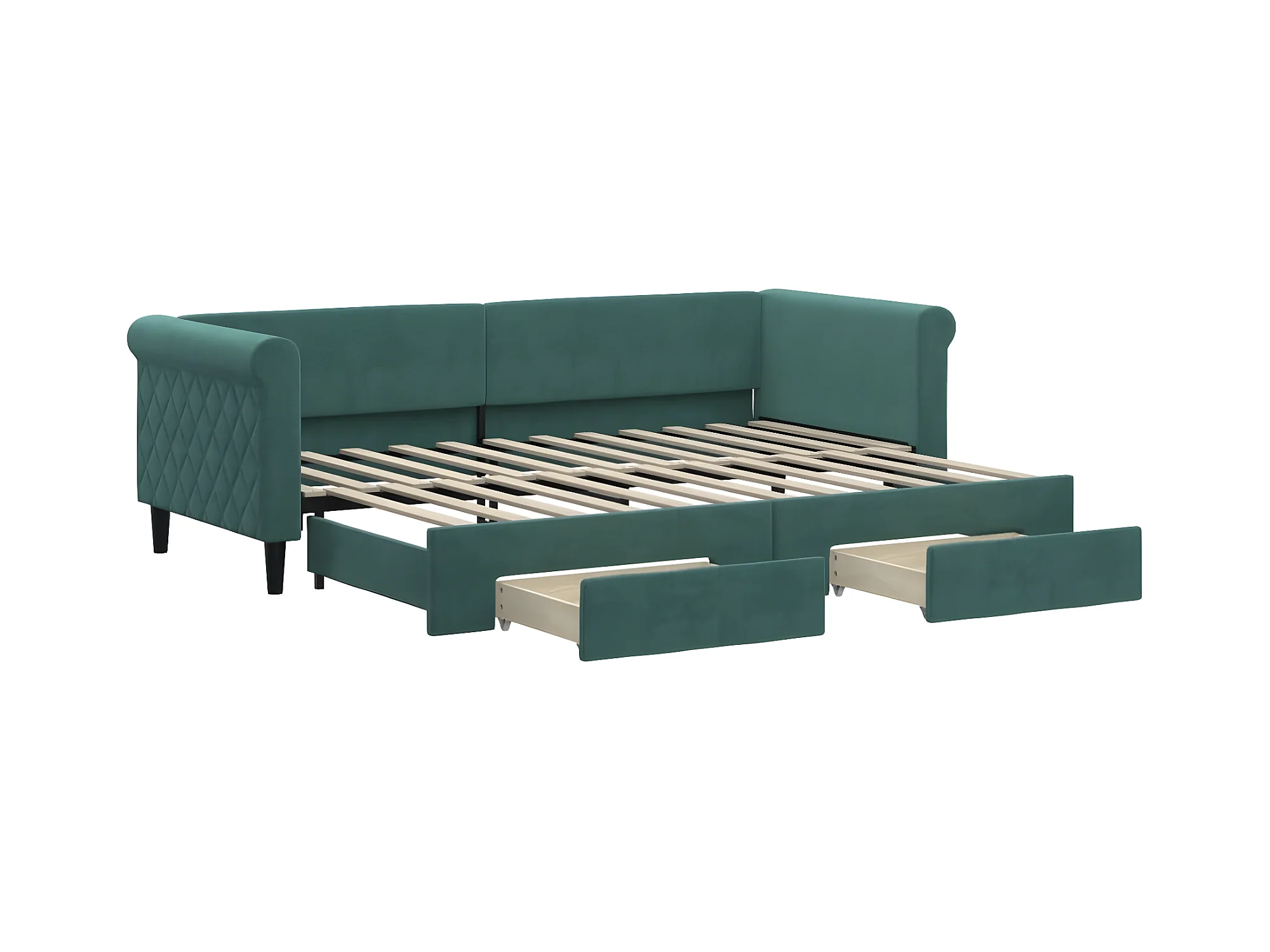 Lit de jour avec gigogne et tiroirs vert foncé 80x200cm velours