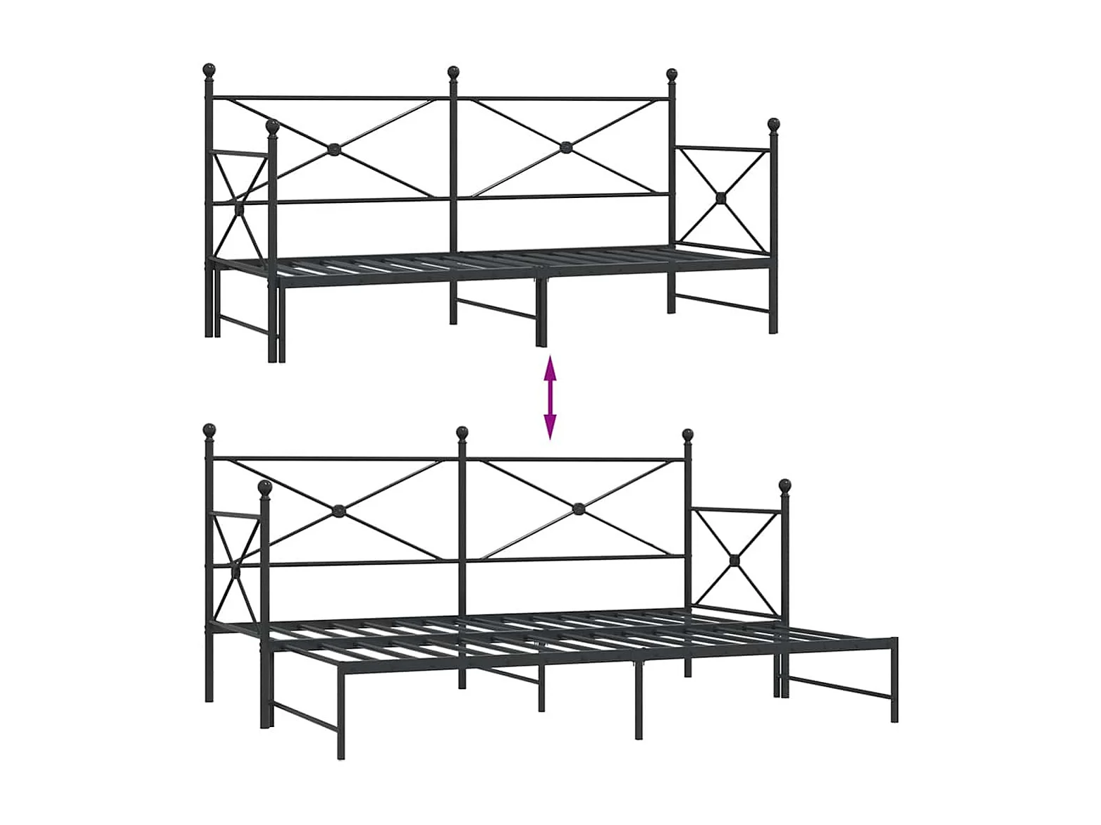 Lit de jour avec gigogne sans matelas noir 75x190 cm