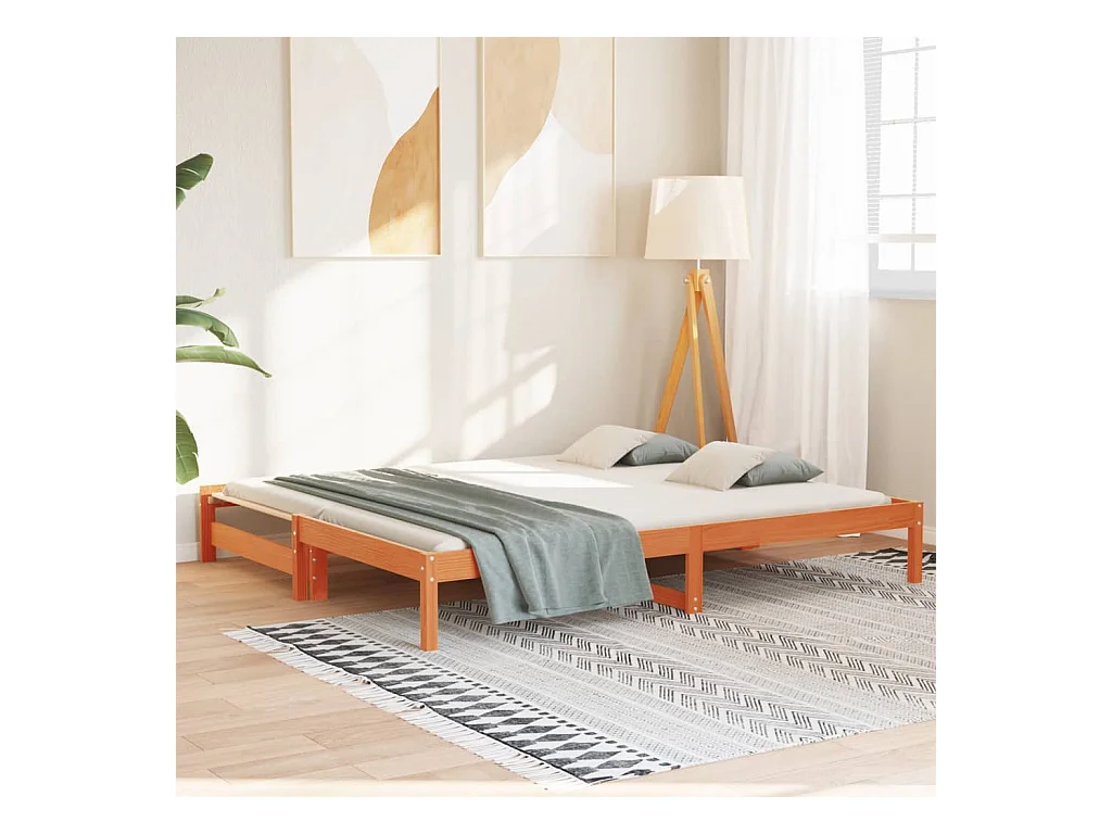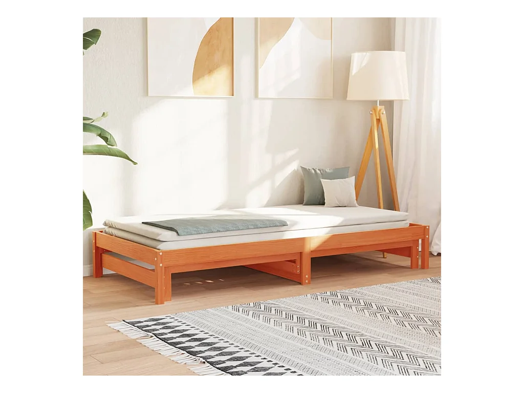 Lit de jour avec lit gigogne marron 80x200 pin massif