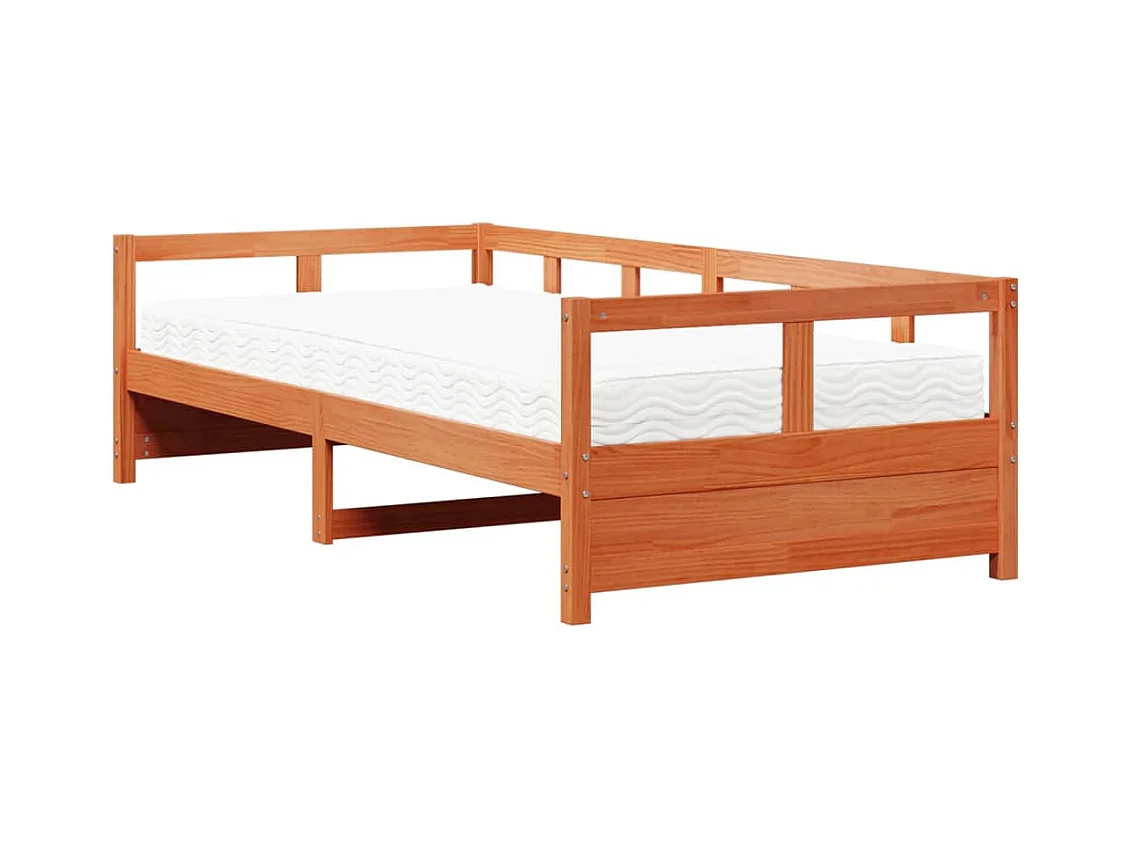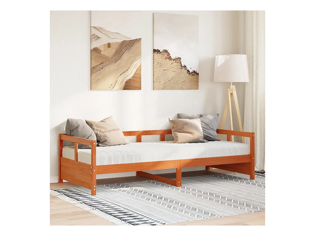 Lit de jour avec matelas cire marron 90x190 cm bois pin massif