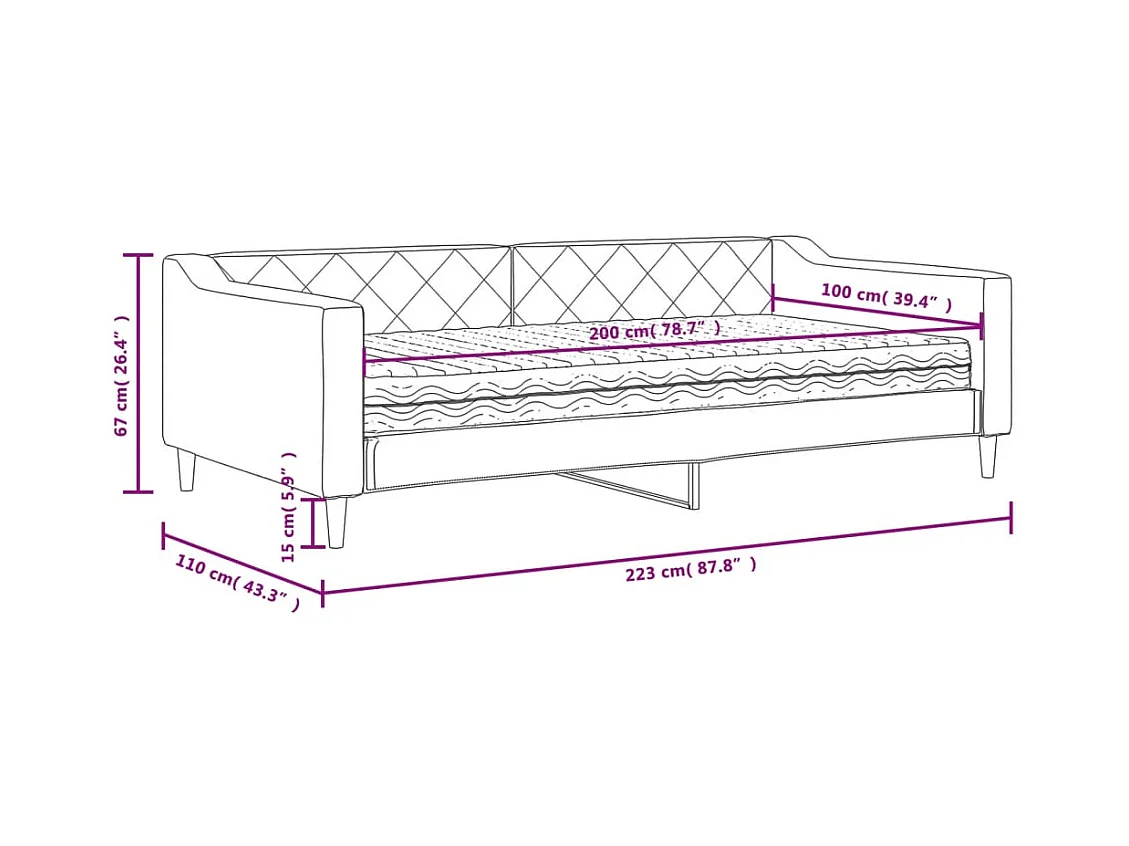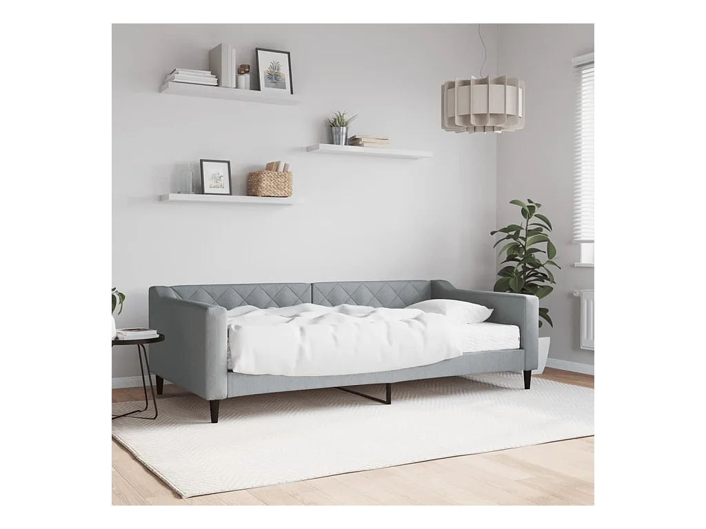 Lit de jour avec matelas gris clair 100x200 cm tissu
