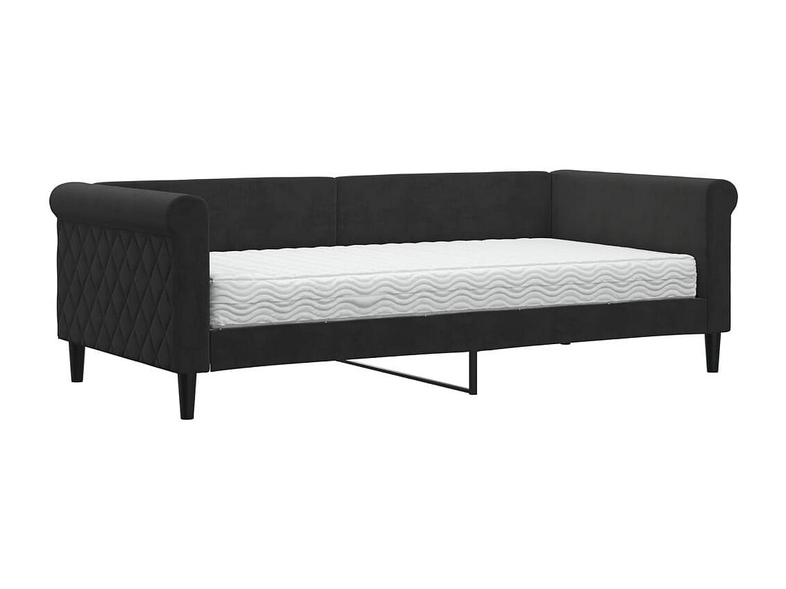 Lit de jour avec matelas noir 90x190 cm velours