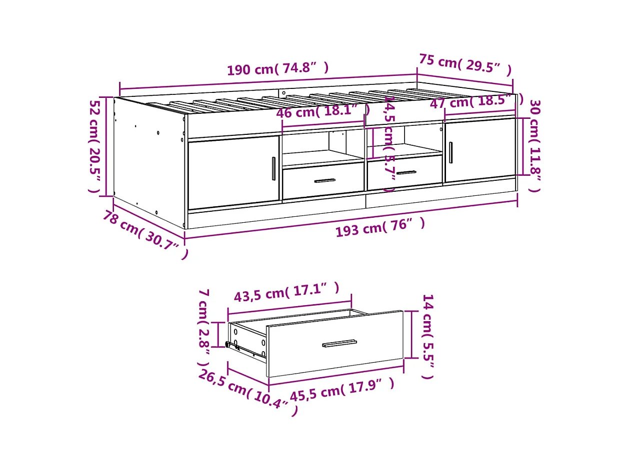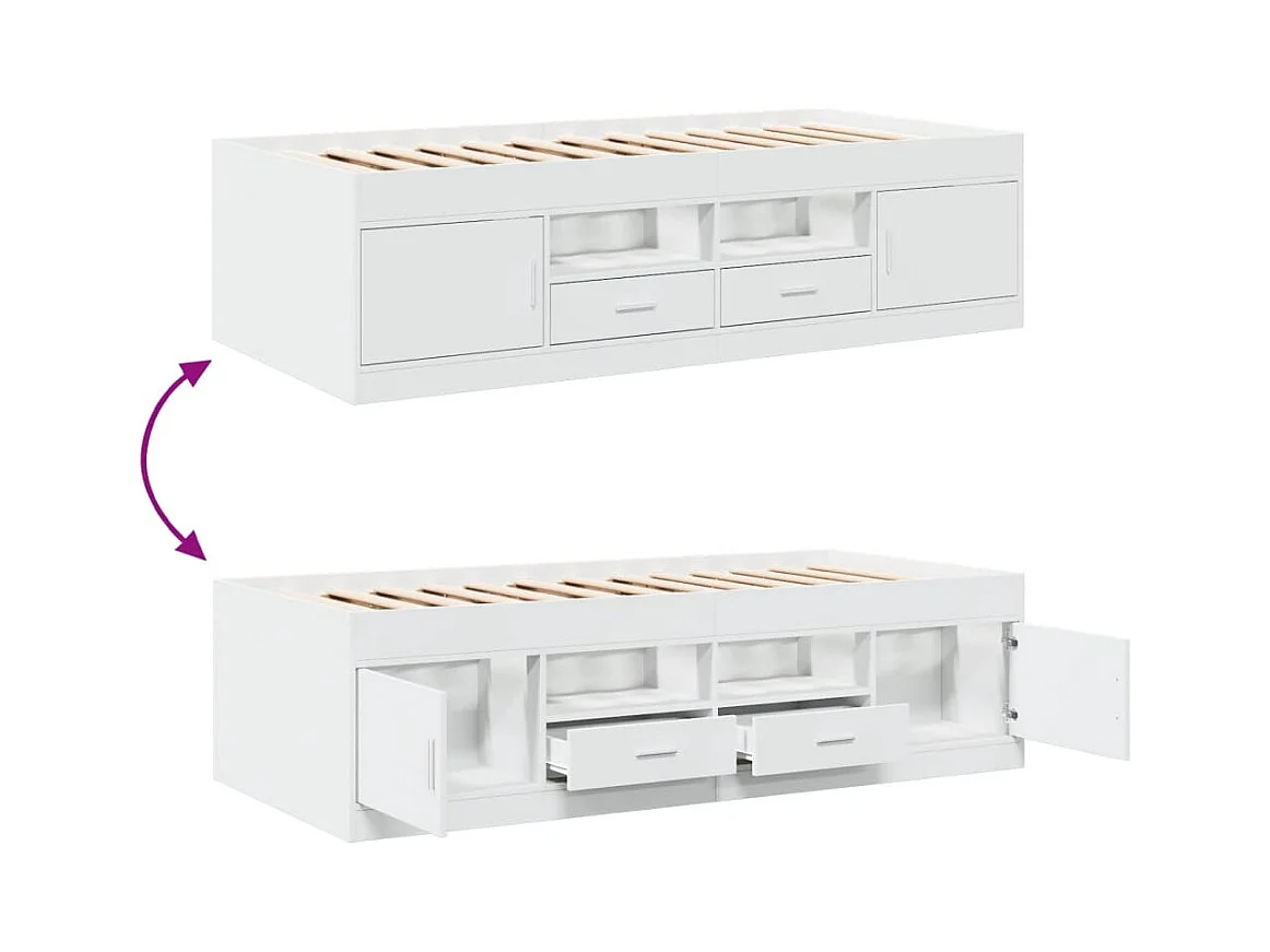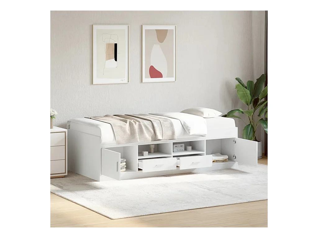 Lit de jour avec tiroirs blanc 75x190 bois d'ingénierie