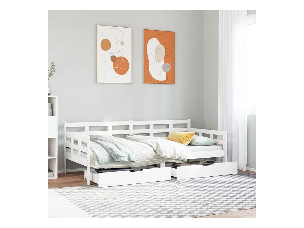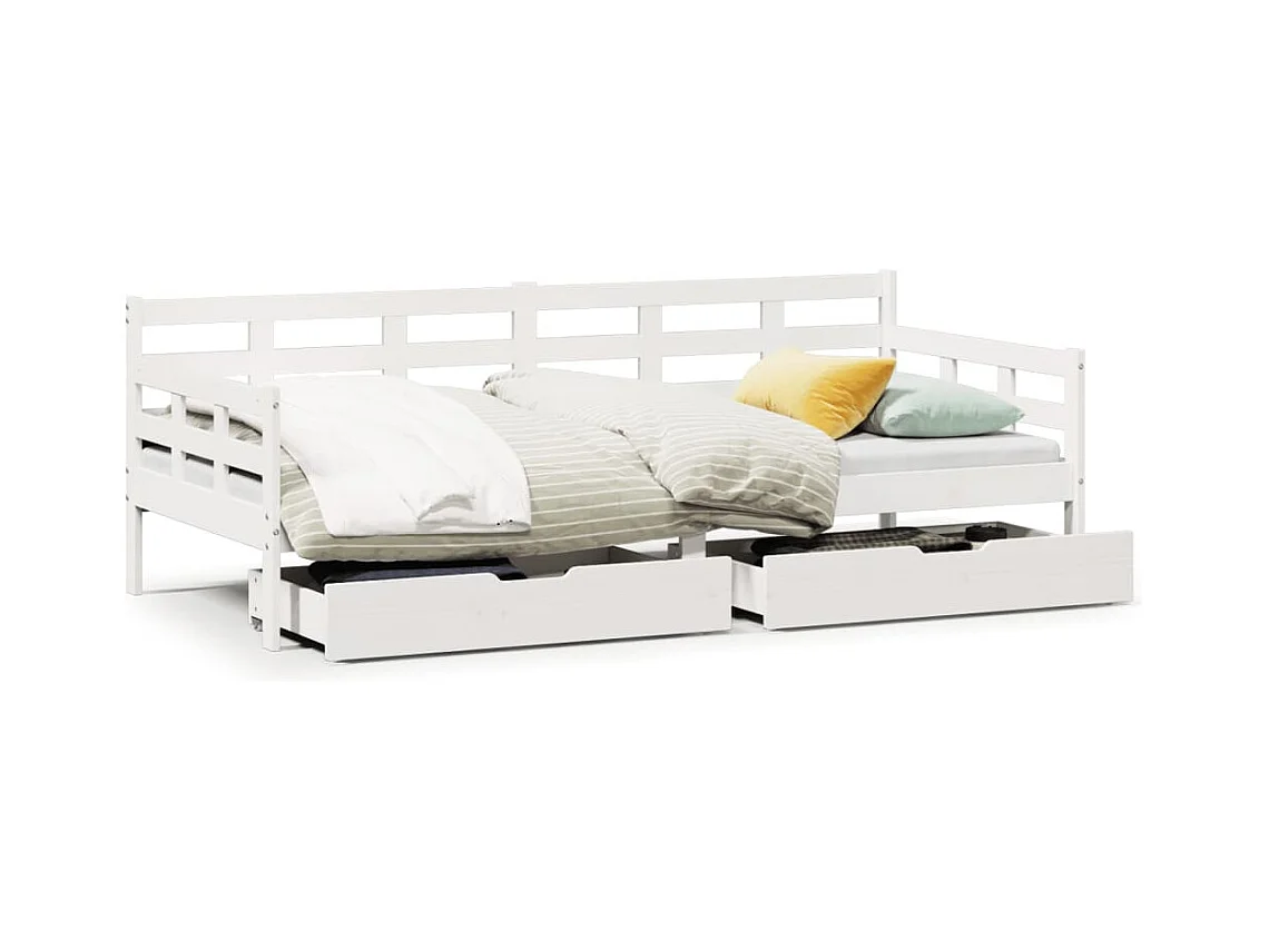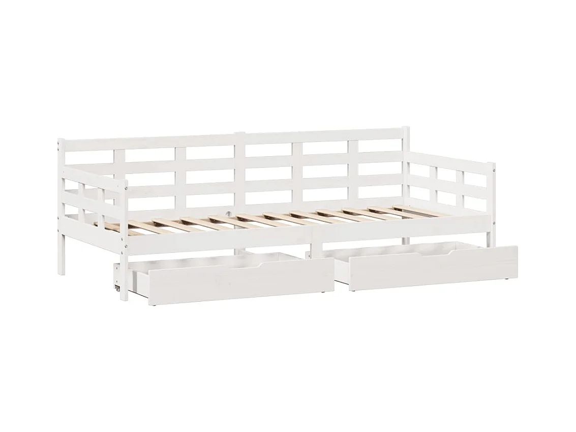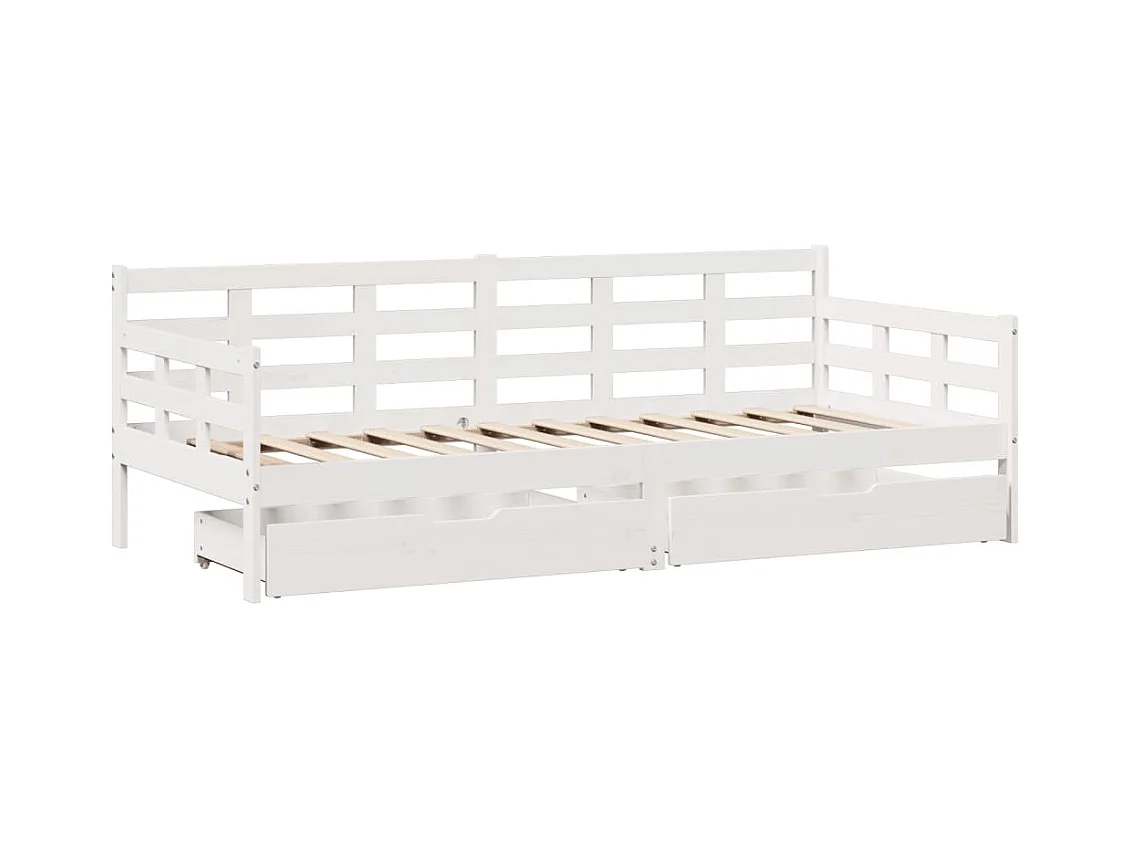 Slaapbank met lades 90x200 cm massief grenenhout wit