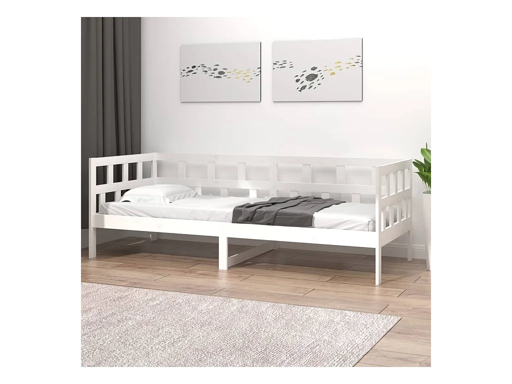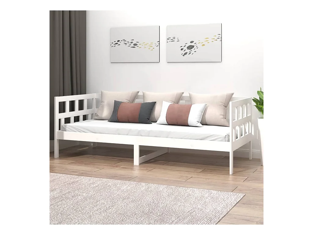 Lit de jour Blanc Bois massif de pin 90x190 2