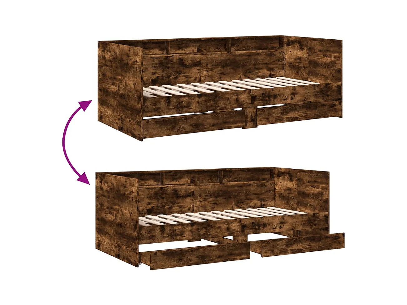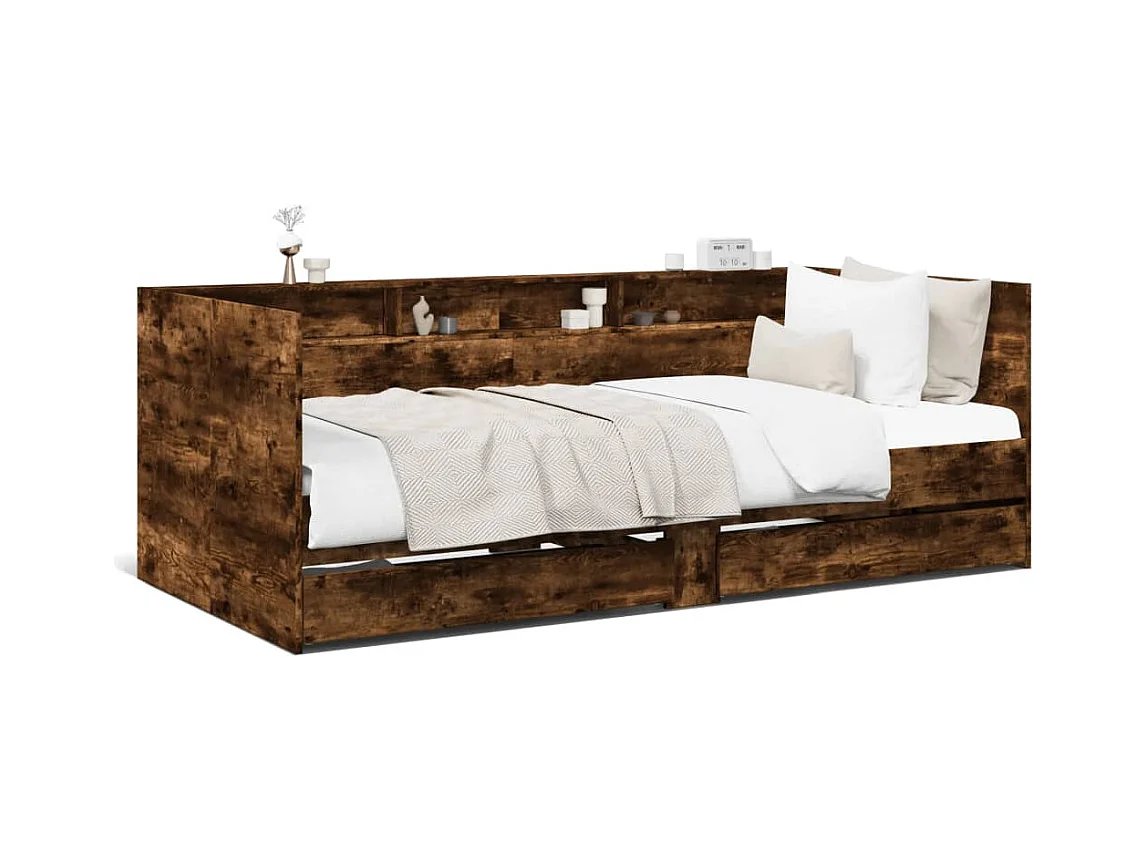 Lit de jour et tiroirs chêne fumé 75x190 bois d'ingénierie